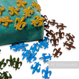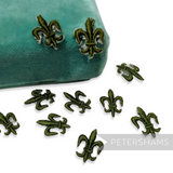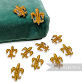 These amazing high quality fleur-de-lis motifs are such stunning quality! Made from really highly embroidered threads into a fine backing, they are teeny tiny measuring in at 12x18mm. Made in Switzerland, these motifs date to the 1960/70s.