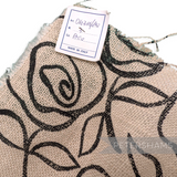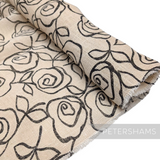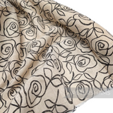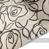 This super wide jute-like cotton fabric is ivory in colour and has a black rose pattern print on the top.