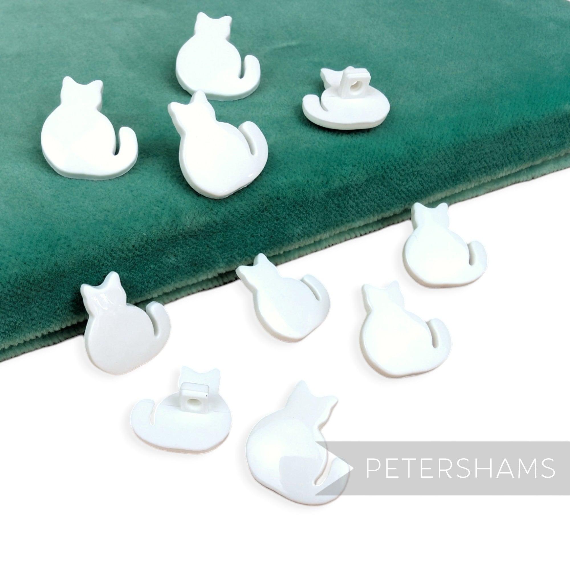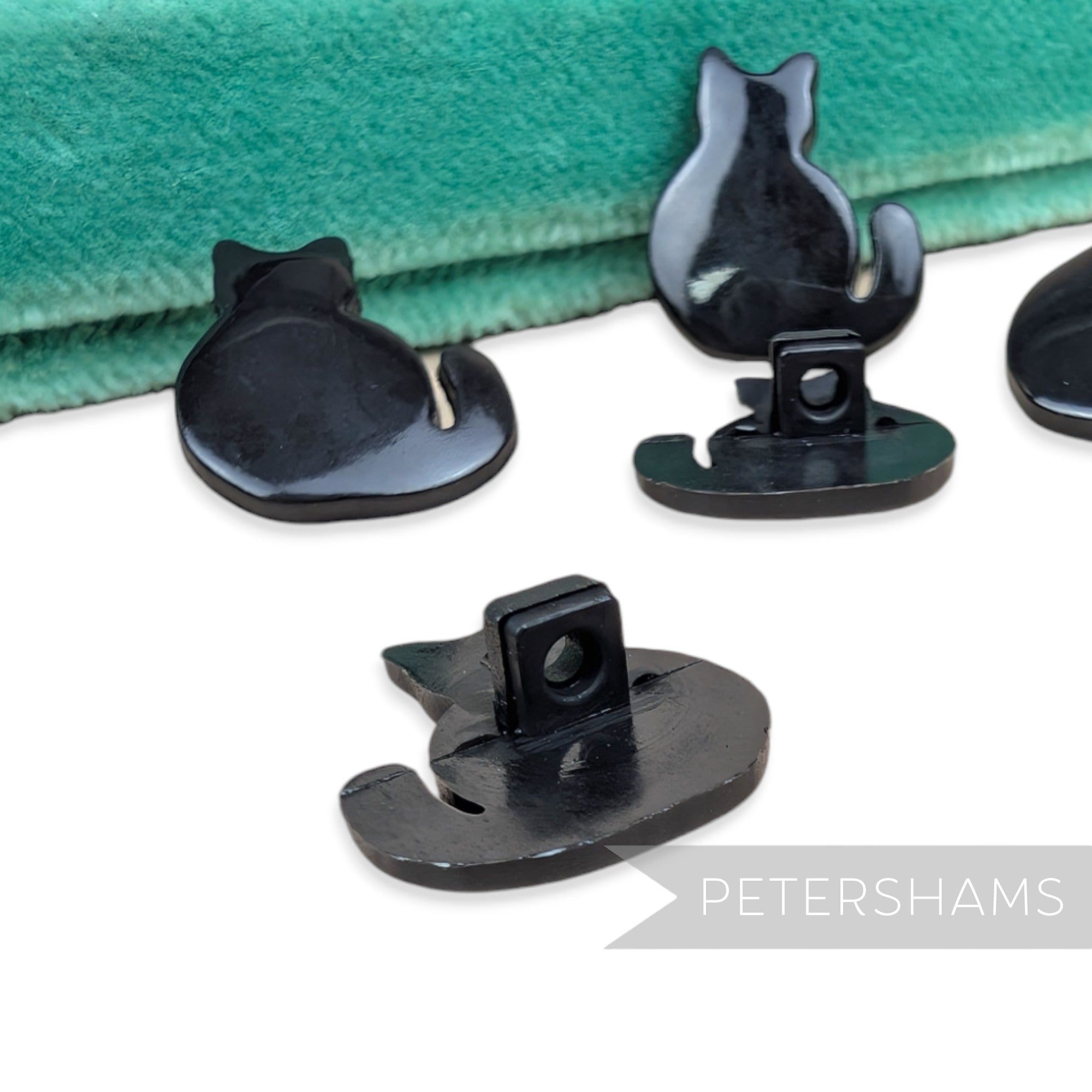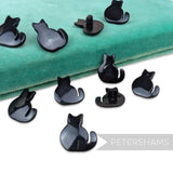 Lucky black cat, anyone? These little cat shaped plastic buttons are a perfect way to add a personal touch to any hat or garment. Made from plastic, they have a shank stand on the back and have a lovely glossy finish.