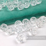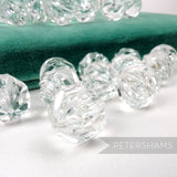 These incredible ridged beads are completely clear and have both a bottom and top hole. Round in shape, they are a lovely quality, far superior when compared with some modern day equivalent.