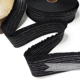 This wide elastic has got it all! Made from a stiff cotton type fabric, it has a gathered edge and metallic silver sparkle stripes running through the centre. Perfect for adding to a hat crown or making into a belt!