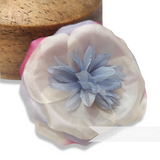 This bloom is a riot of colour! Made from floaty silk, each petal has been shaped and bound to central wire. It even has a flourish of silk petal stamens at the centre! Ideal for adding to hats and headpieces, this flower has such great colouring to it with little kaleidoscope gradient moments.