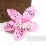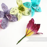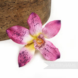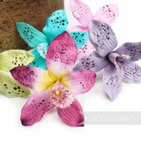 We adore 'Christina'! These petite brightly coloured orchids are fully wired and feature hand painted petals and a velvet centre. The petals have a very slight flocked suede finish which lends to their beauty.