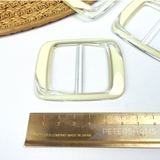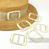 This cream and translucent rectangle shaped plastic buckle dates to the 1940/50's and has wonderful cut-outs at the diagonal edges. Simply perfect for adorning the side crown of a hat. In great vintage condition.