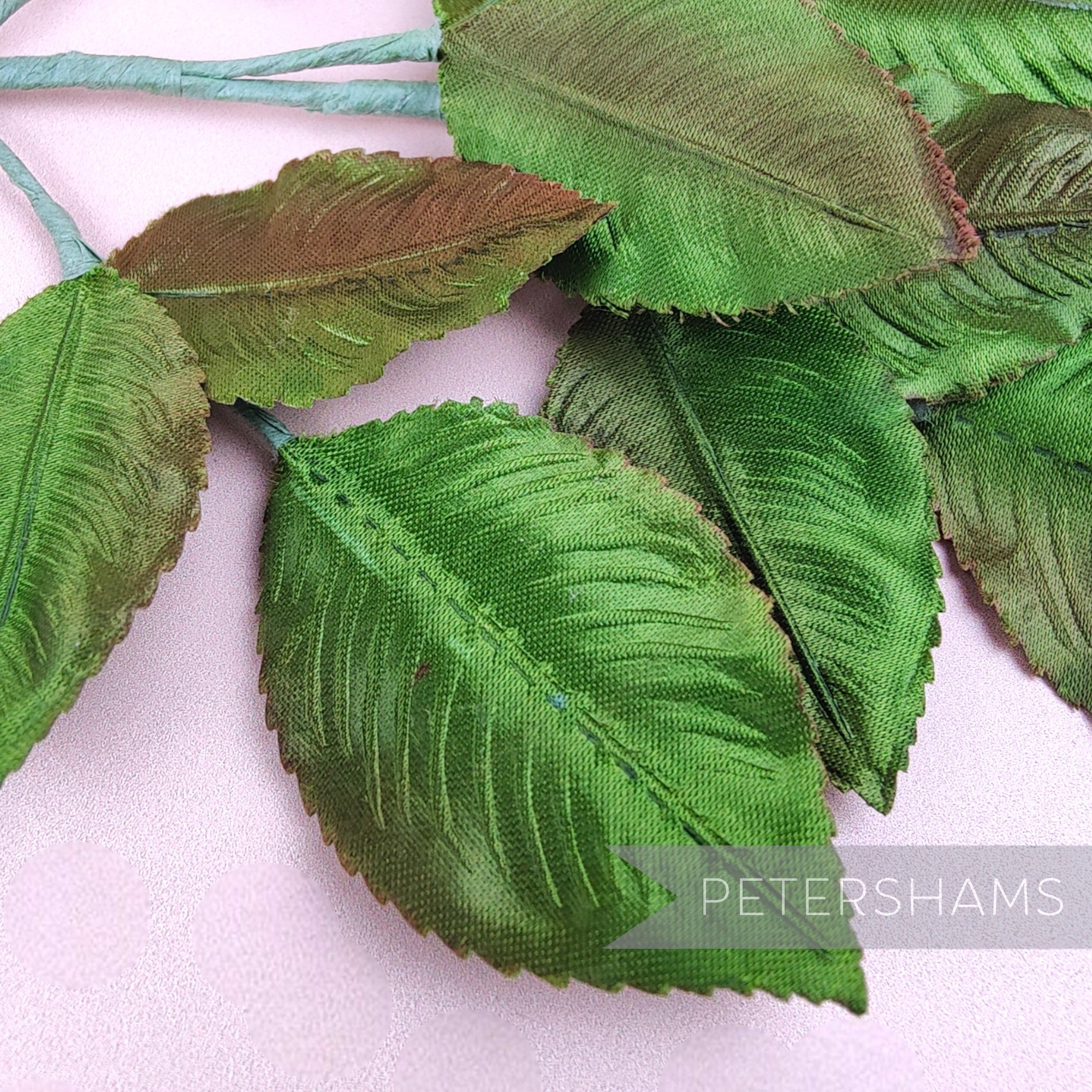 'Frank' is made up of smooth satin fabric that catches the light beautifully! All the leaves are individually wired and attached to a central wired stem. With a gorgeous gradient effect dye, they are fabulous quality dating to the 1980's.
