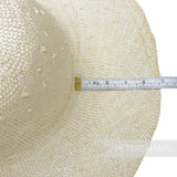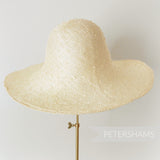 This larger brim size deluxe capeline is made from super fine natural undyed ramie straw and has knotted stitch detail throughout. A real rarity, it looks amazing when blocked out with supreme texture and interest.