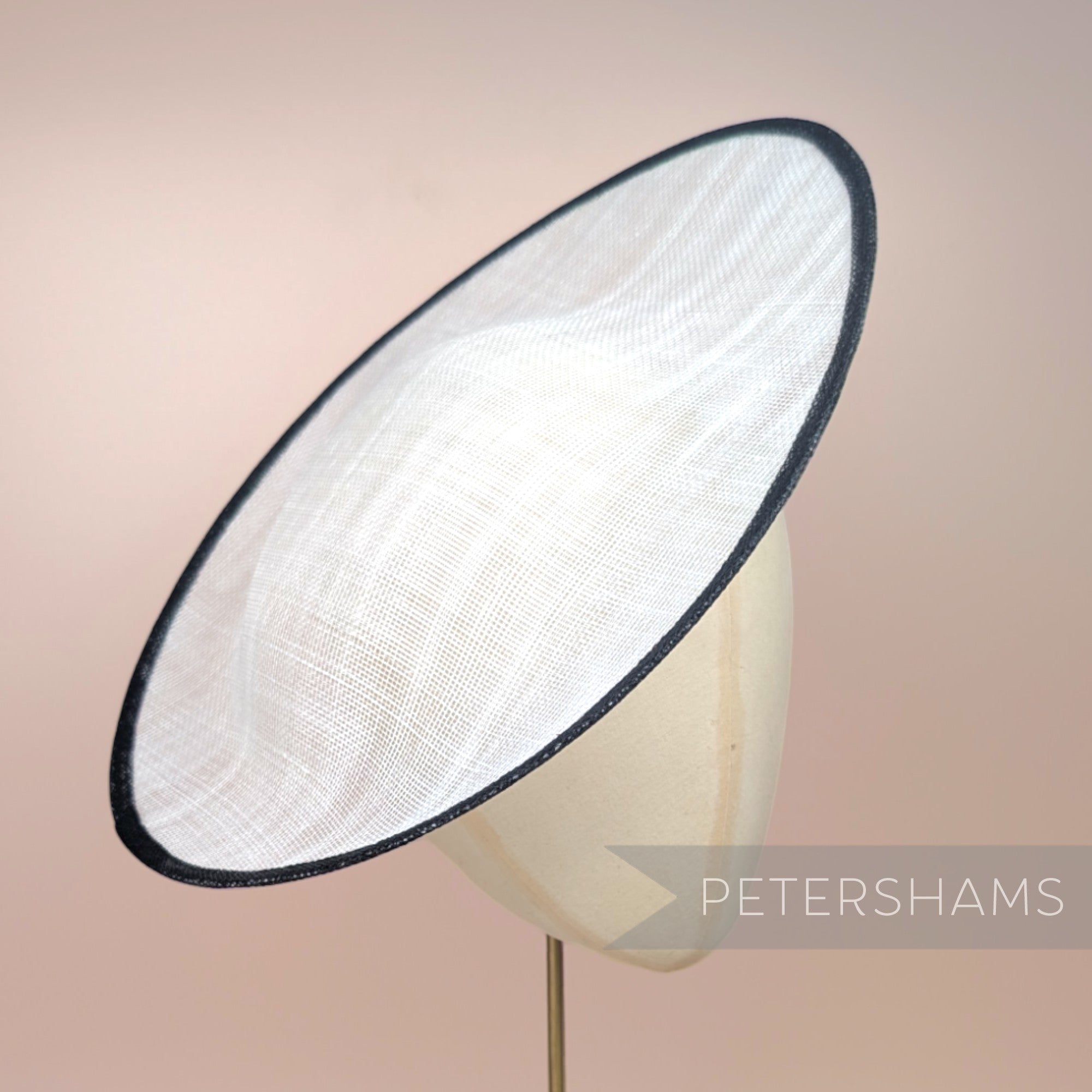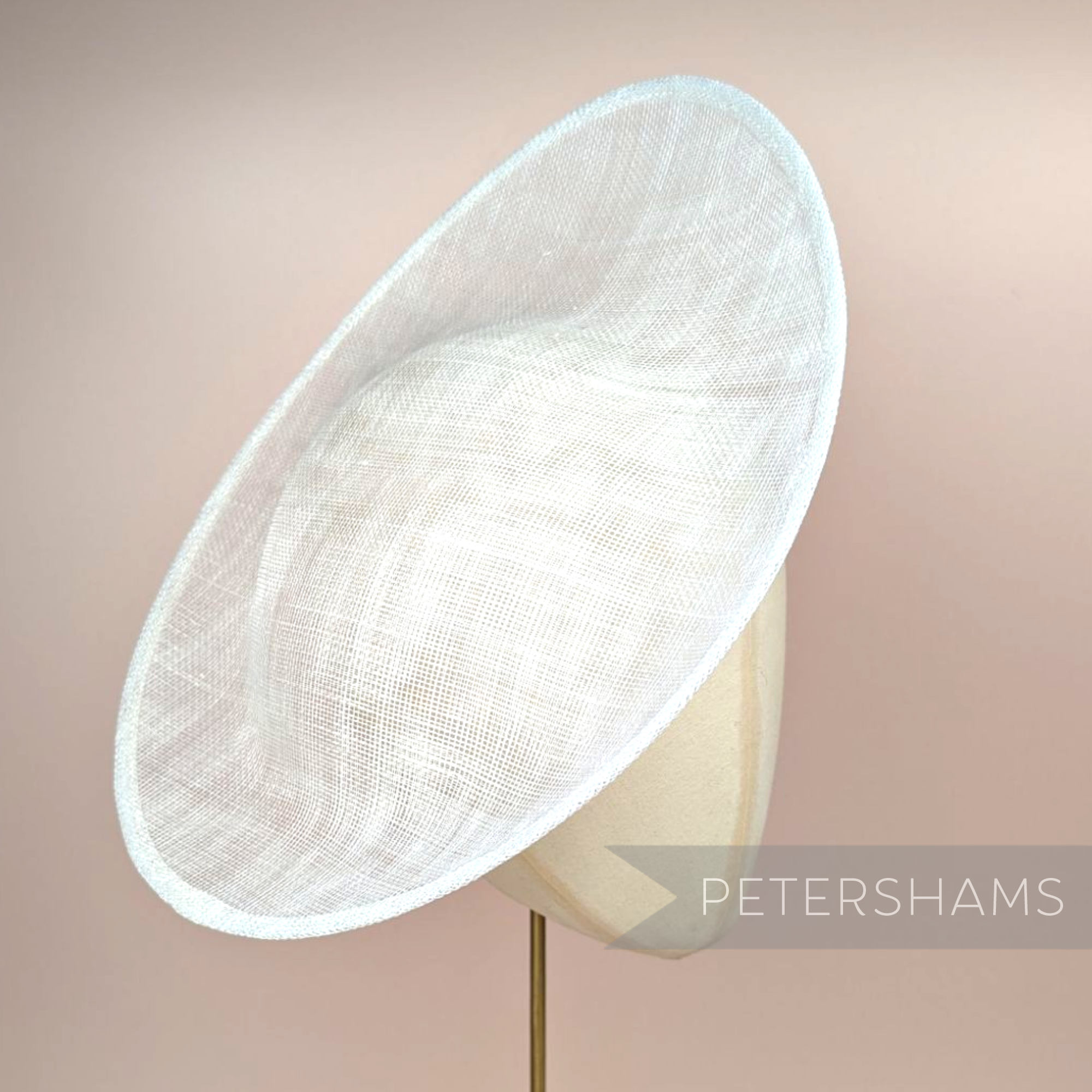 Made from 2 layers of stiffened sinamay, this fascinator hat base is a great starting point for you to make a ginormous statement hat. ready to trim - just add a headband for securing to the head (not included but available in our shop).