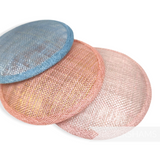Our 13.5cm (5.31 inch) round fascinator bases, now with metallic lurex, are made from a double layer of uber-high quality stiffened sinamay millinery fabric. It's a fabulous sized base for a wide range of fascinators and small hat styles. Trimmed with matching sinamay around the edges it has a gentle curve that sits nicely on the head.