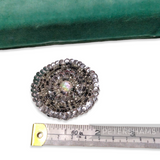 This stunning motif has everything going for it - shimmery silver sequins form a circle shape and is interspersed with seed beads and an amazing opal-like galaxy gem middle. Made in Hong Kong, please note some of the metallic silver beads have tarnished metallic centres.