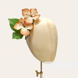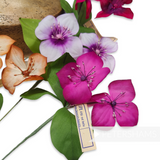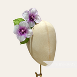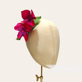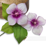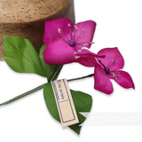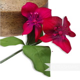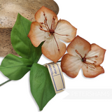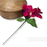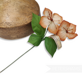 This stem consists of two flowers and has three leaves all wired up to a central stem. The flowers themselves are made from carefully veined gradient dyed silk and fine stamens.