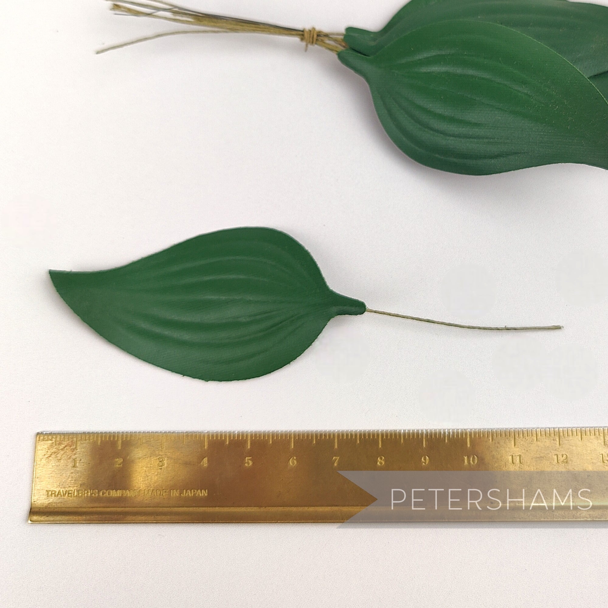 Dating to the 1970/80's, these vintage Japanese leaf stems are made from a lovely leather effect fabric with a lovely gentle flick at the top of the leaf. They are a simple classic leaf shape and each leaf is fully wired.