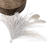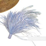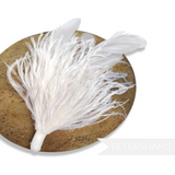 This hat mount combines the timeless power of ostrich feathers and floaty stripped coque feathers which makes for a glamorous addition to hats and fascinators! Mount is made from ostrich feathers together with 5 stripped coque in it's centre that are secured at the feathers base.