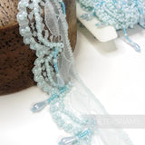 This adorned lace has a vintage French vibe to it and has a plethora of faux pearls and dangling beads arranged throughout.