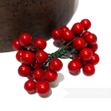 'Philip' Vintage 1950's Double-Ended & Wired Ceramic Red Berry Stamens