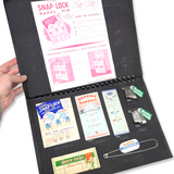 This bound sample card of was made in the 1960/70's in England. It contains 4 sample cards with examples of safety pin and pin packaging.