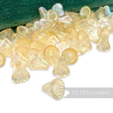 These incredible small fluted beads are conical in shape and have a lovely pattern on the surface. They have one hole through the centre of the bead. Far superior when compared with some modern day equivalent and their unique shape and colouring is perfect for headpieces, costuming and jewellery.