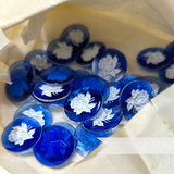 These flat backed glass stones are EVERYTHING! One of our favourites from our haul from a closed down jewellery manufacturer, these beauties date to around the 1960's and feature a finely cut raised dome and a cut-out rose relief on the underside that has been filled with white colour to make the rose pop from the topside - it is so pretty!
