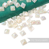 Square in shape, they come to a point in the centre, throwing out pyramid vibes. Totally unusual, and utterly stunning! The sequin has four sew holes at sides.