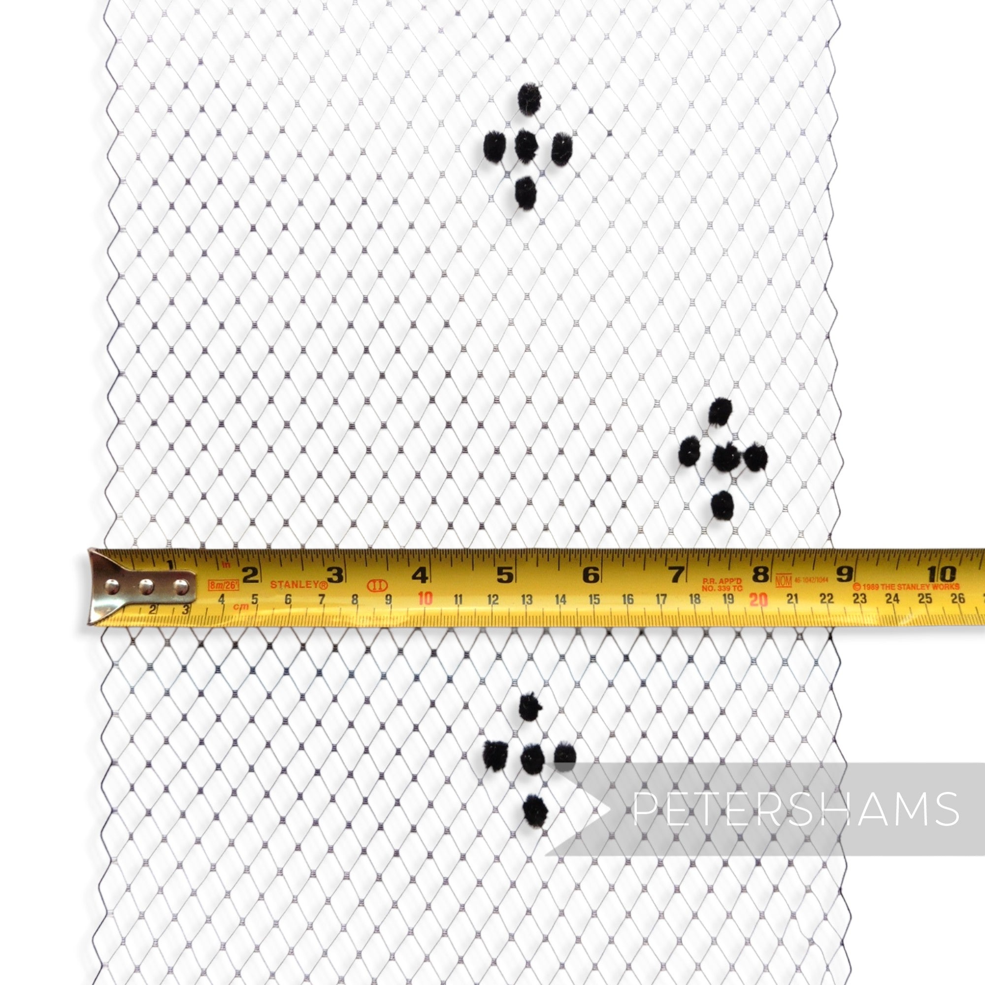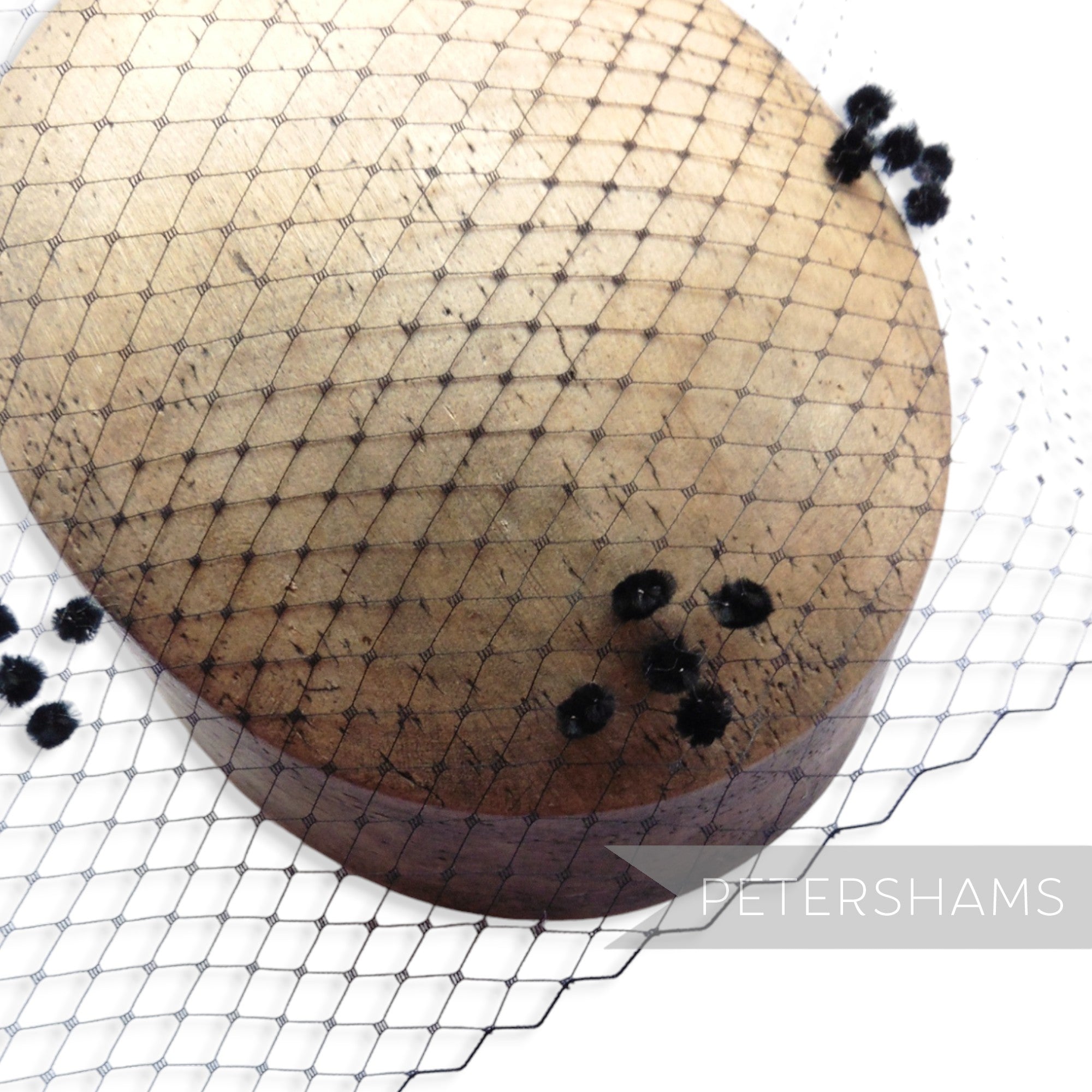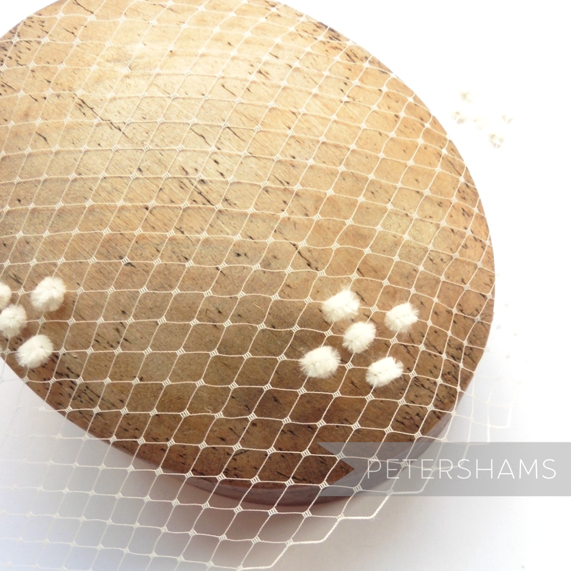 Exclusive to Petershams we are so pleased to offer you this vintage replica veiling! Based on some veiling we found in an old hat factory in France, we were so taken by it's intricate chenille dotted pattern that we were sad to see it go. So we got some made!