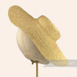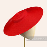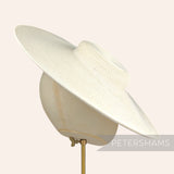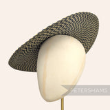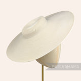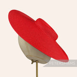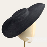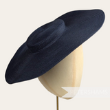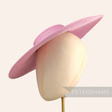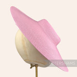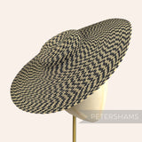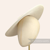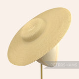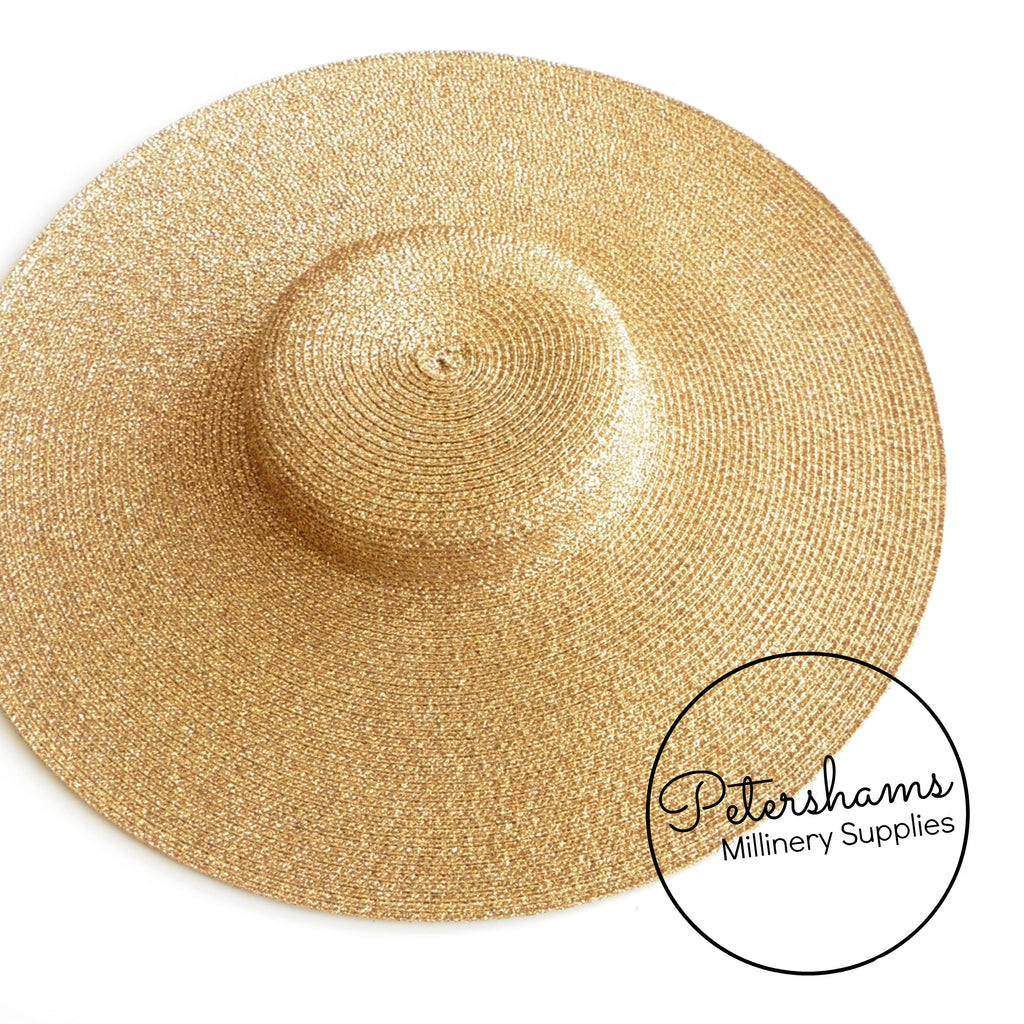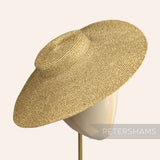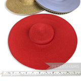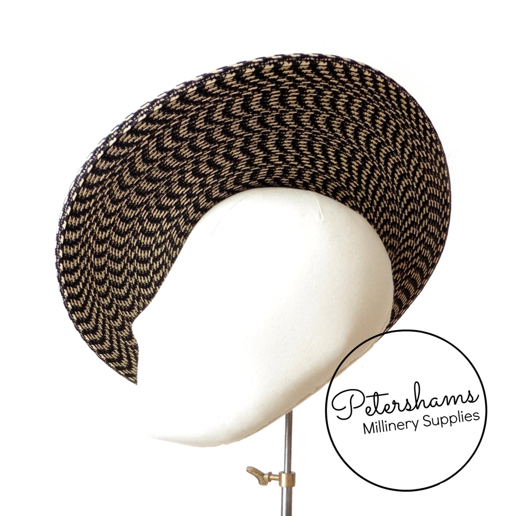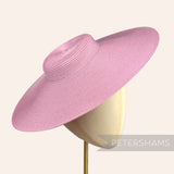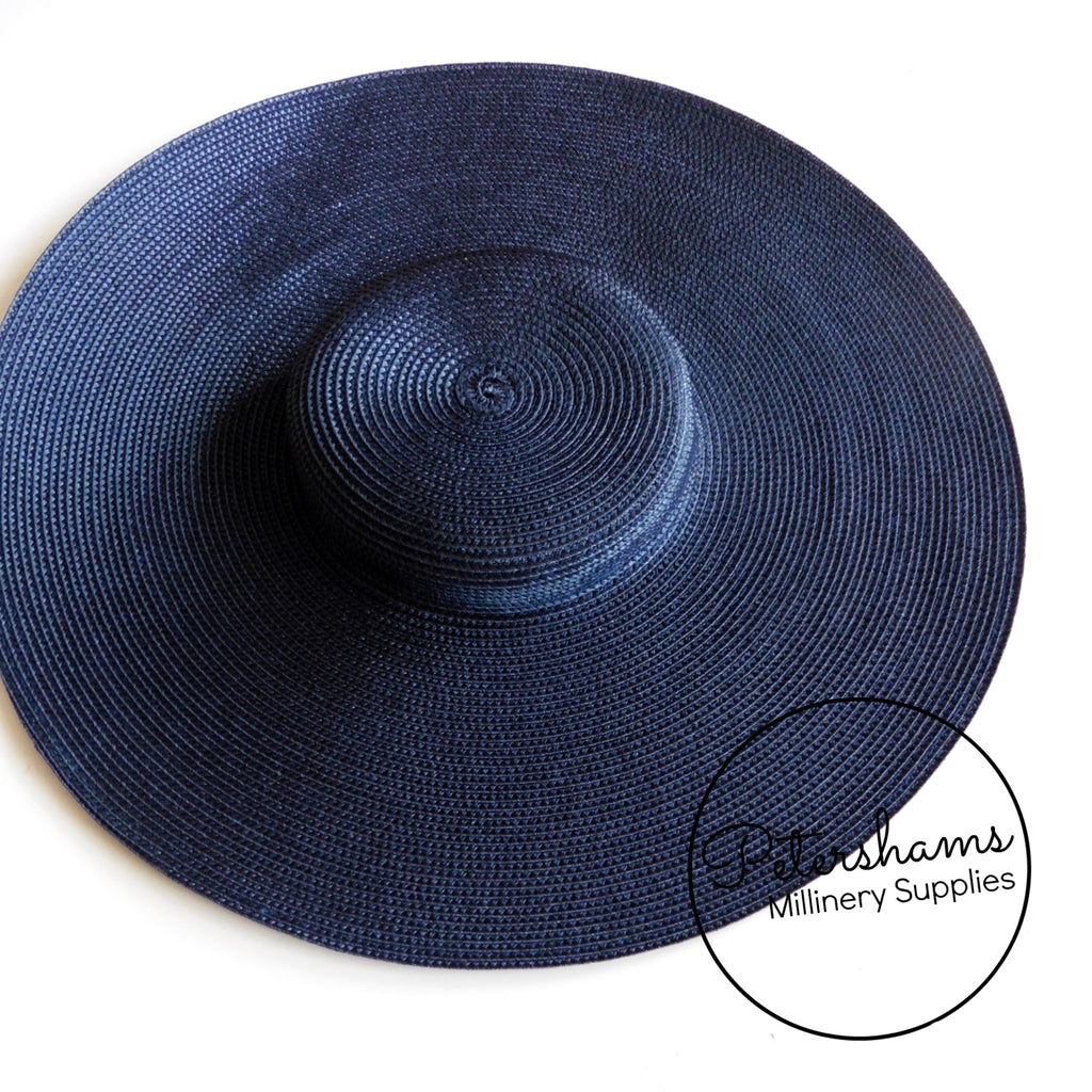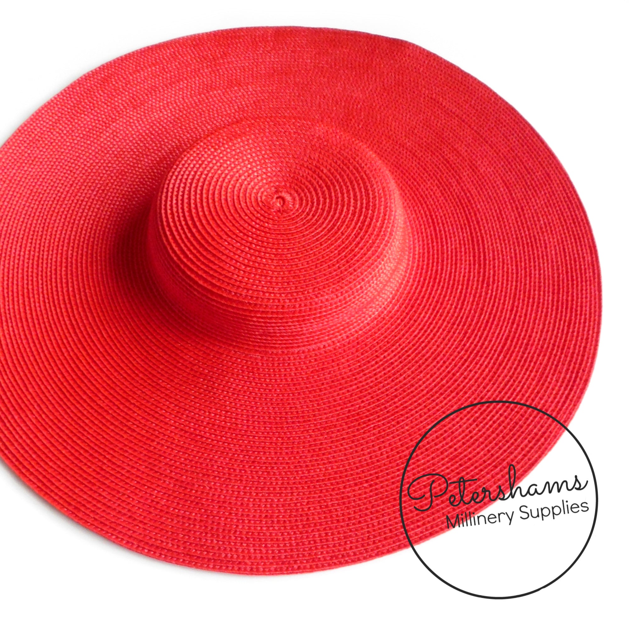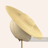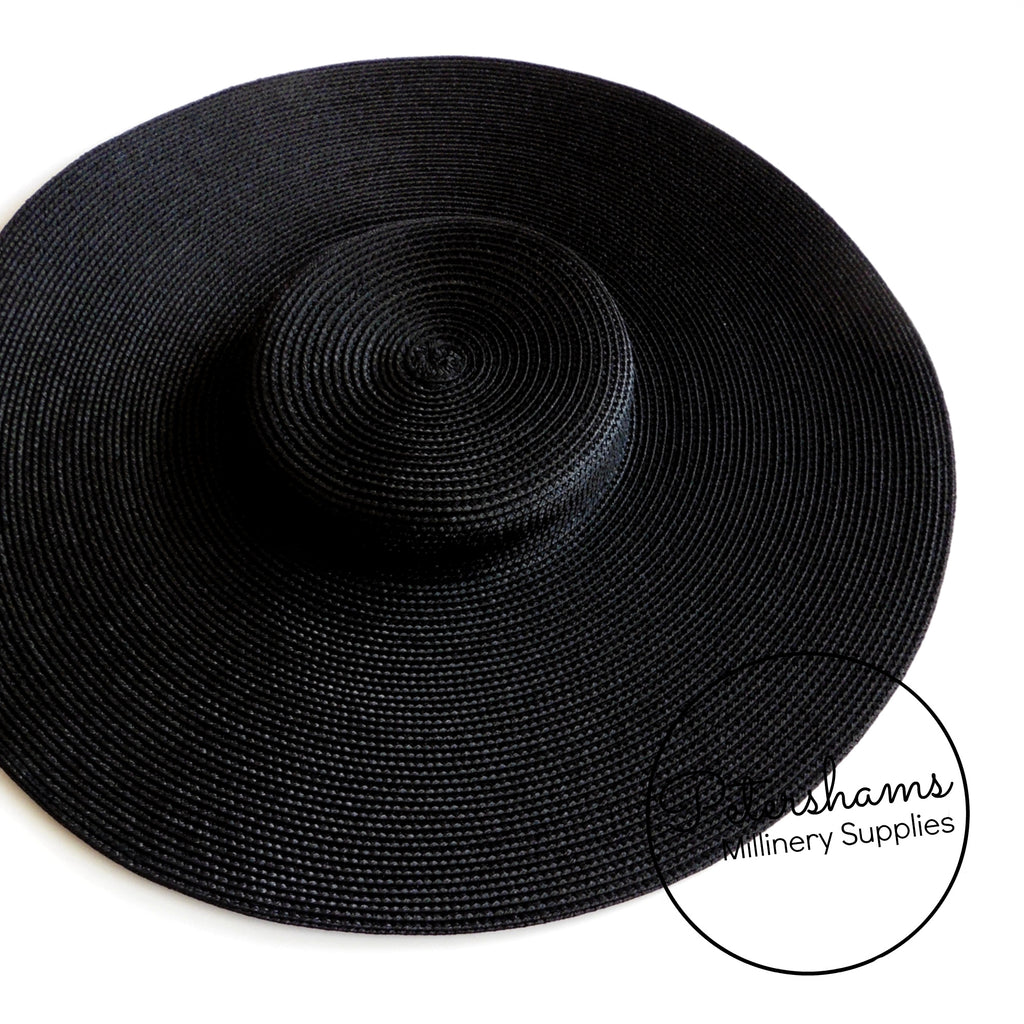 This cartwheel hat base is a classic shape that has sprung into popularity in the past year. Made from polybraid that has been spiraled and blocked, it has a petersham ribbon sewn into the inside crown for stability.