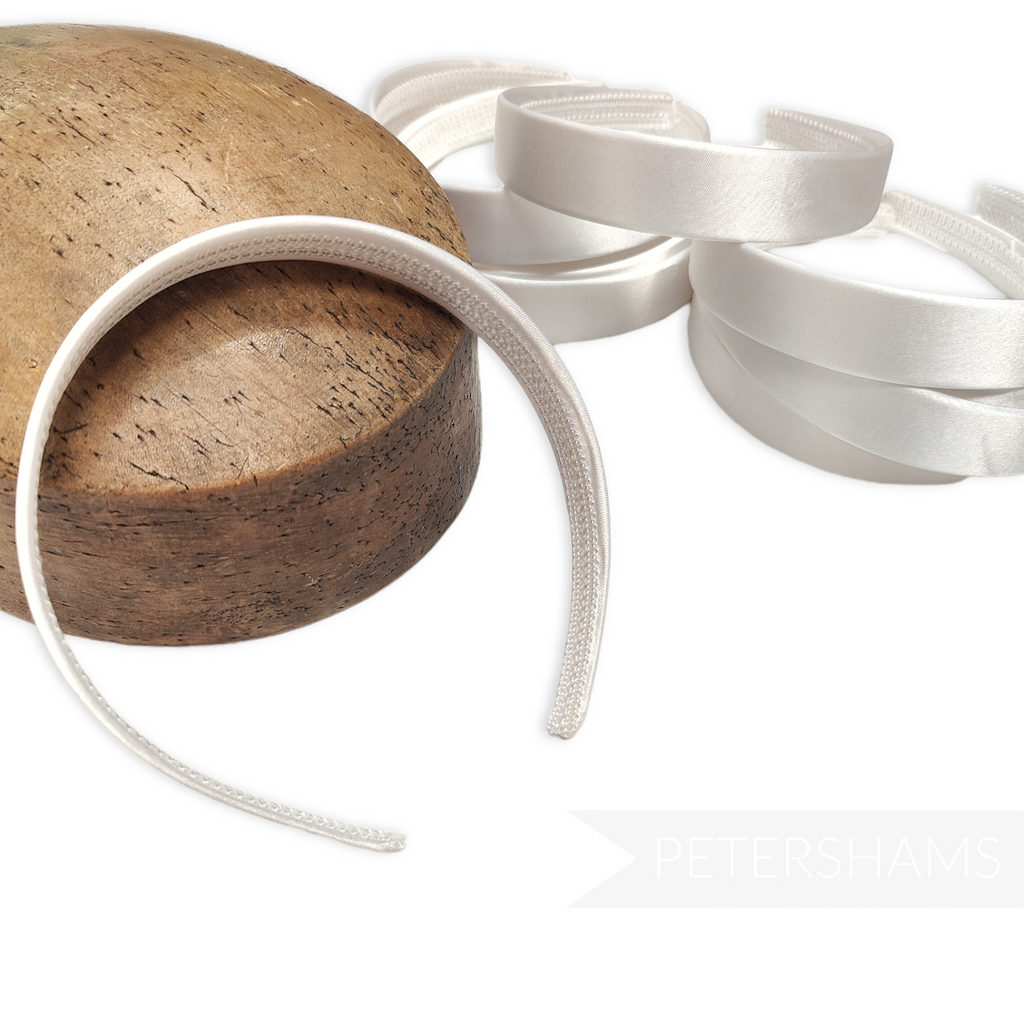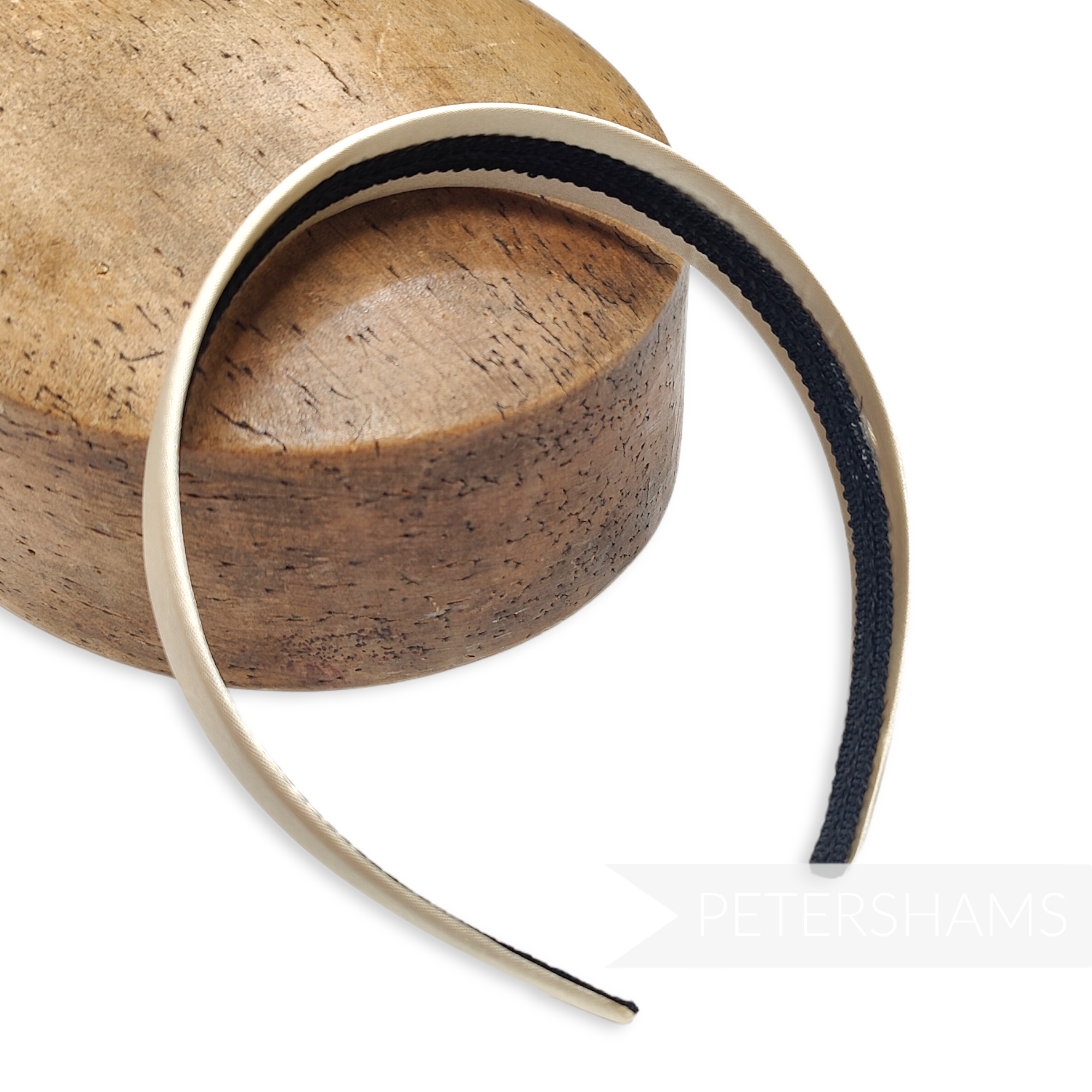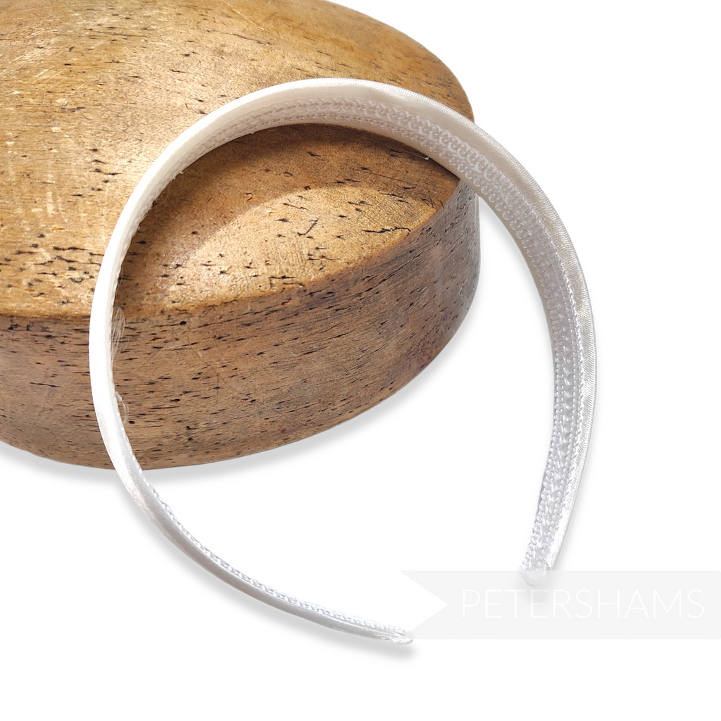 We have a new favourite headband! With a 24mm (.94 inch) wide flat base it is absolutely perfect for attaching to hats and fascinators that need to stay put. Better yet it has a plastic core which means it's not 'pinchy'.