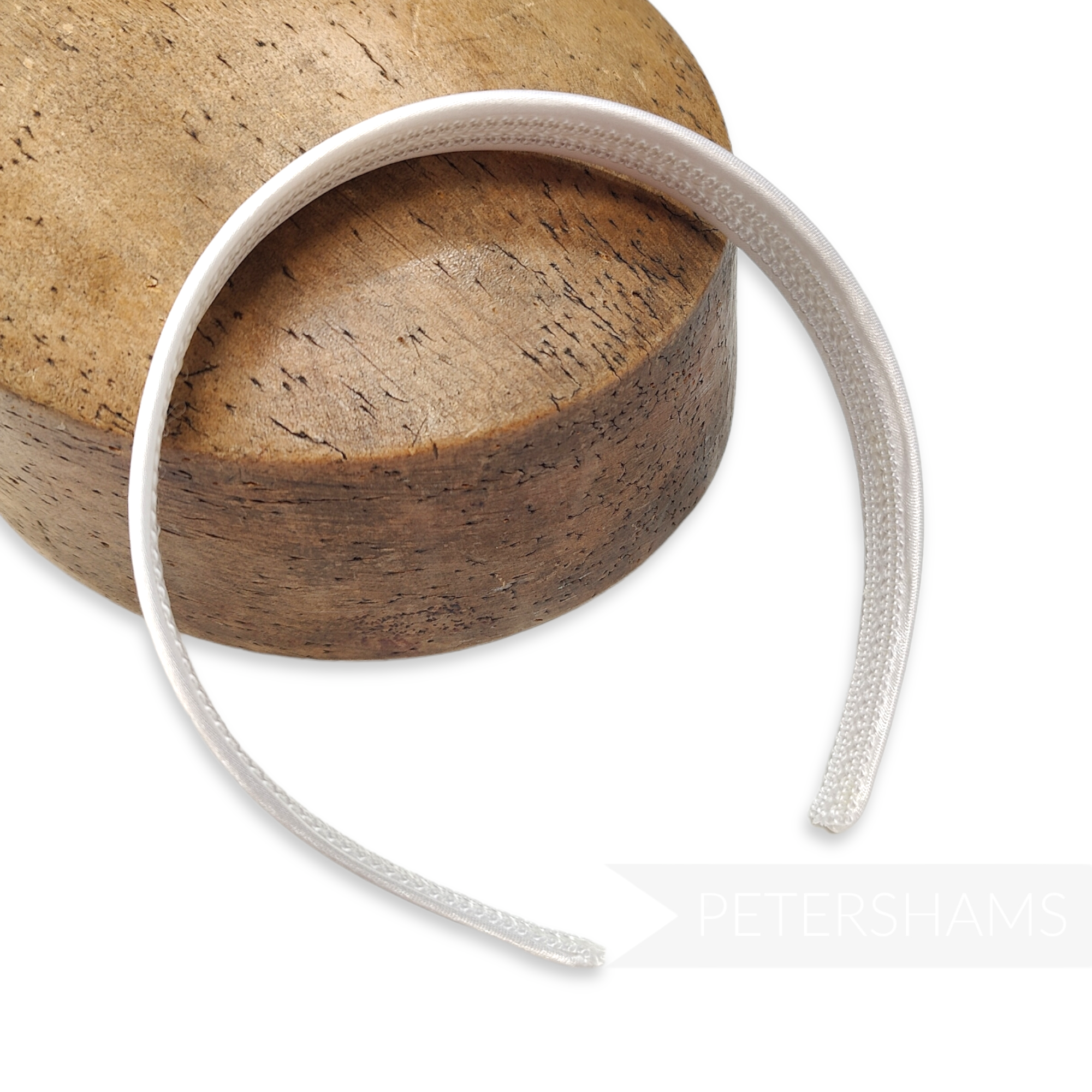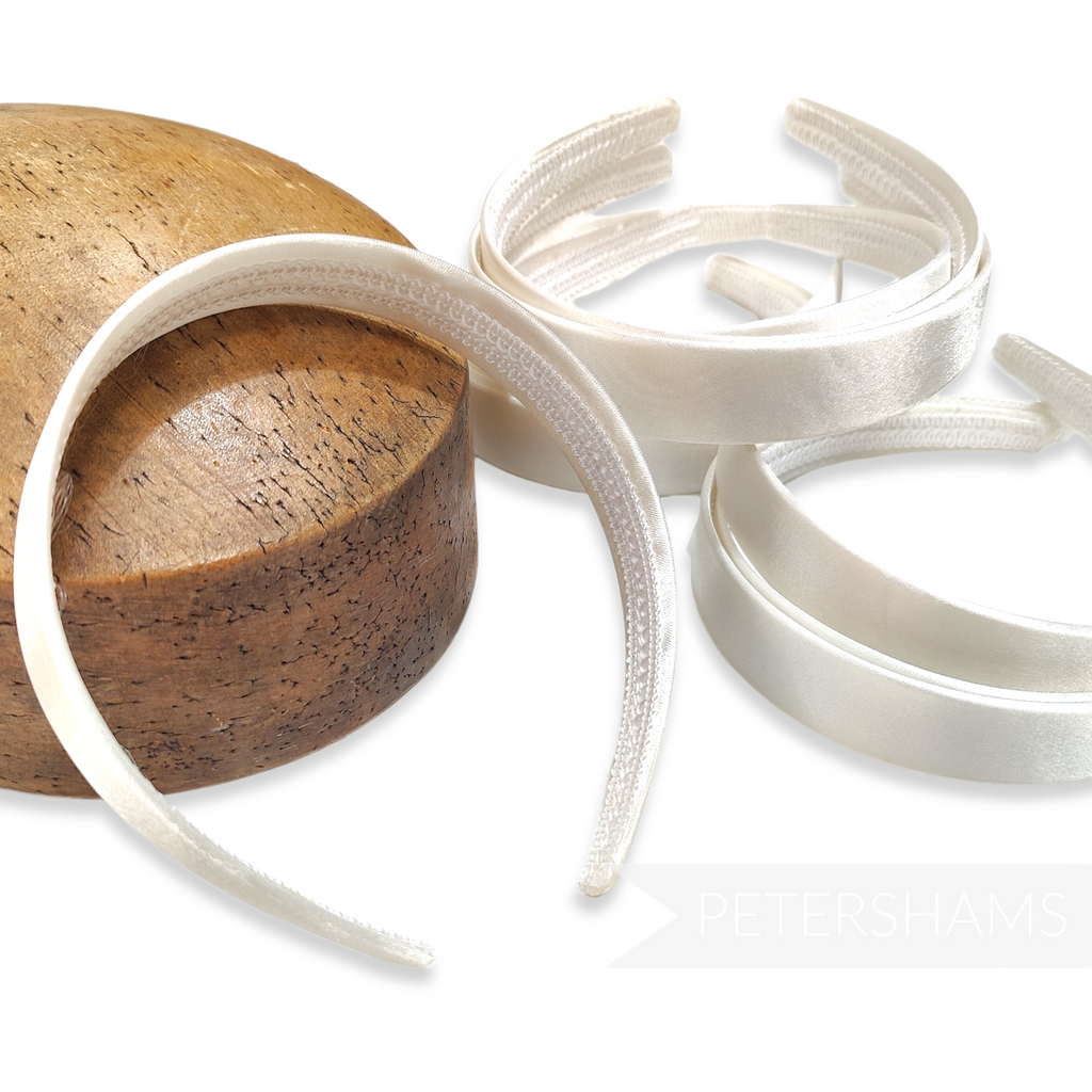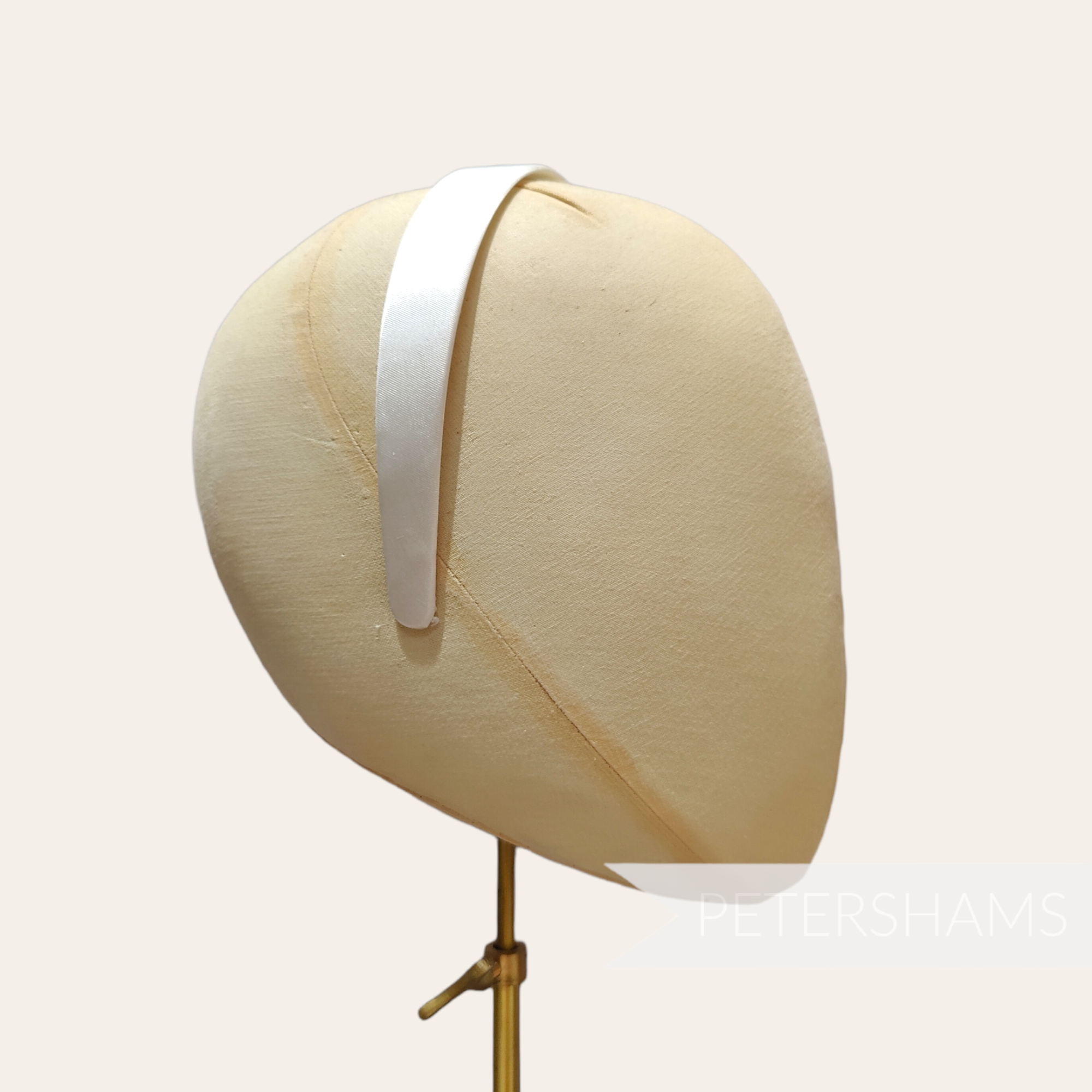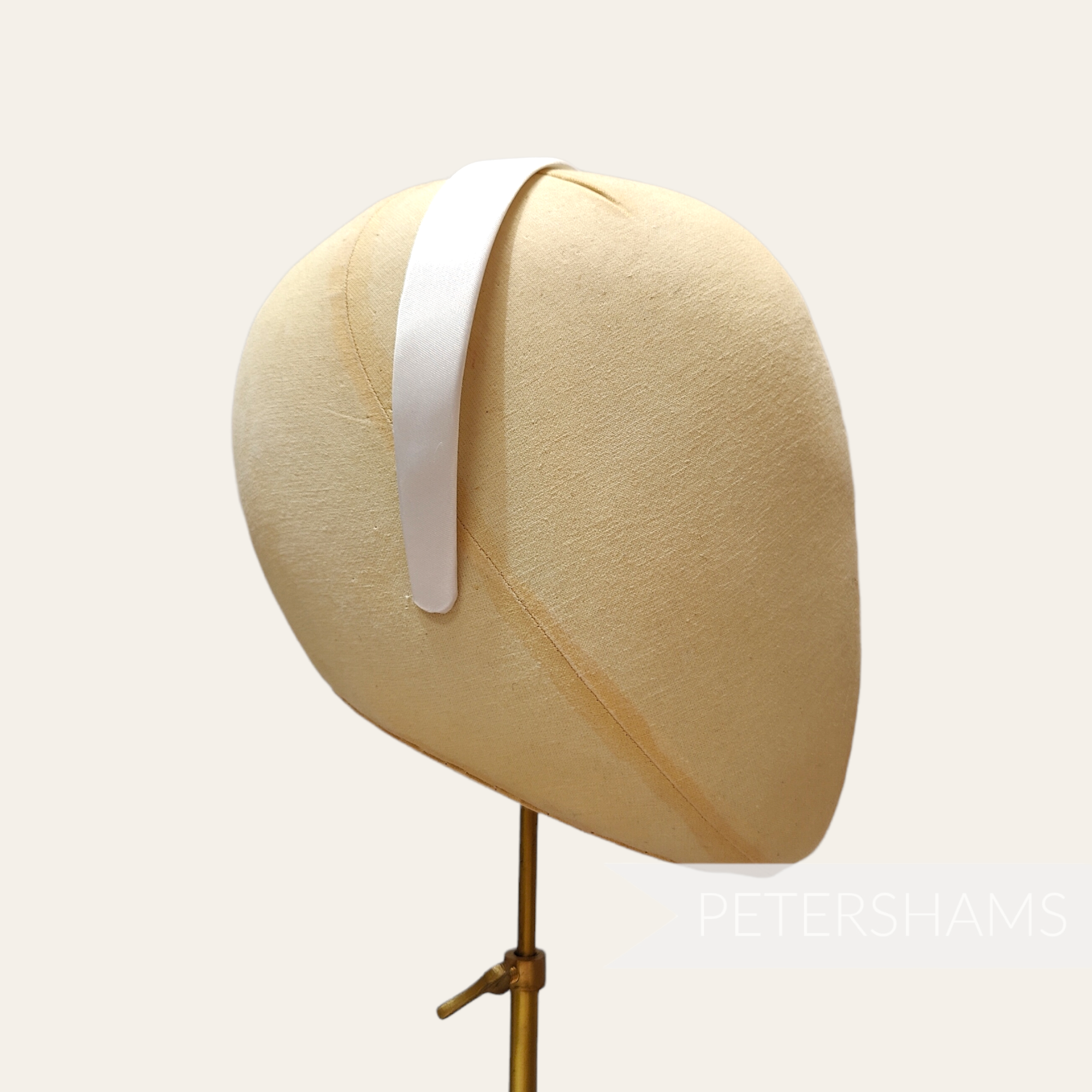 We have a new favourite headband! With a 24mm (.94 inch) wide flat base it is absolutely perfect for attaching to hats and fascinators that need to stay put. Better yet it has a plastic core which means it's not 'pinchy'.