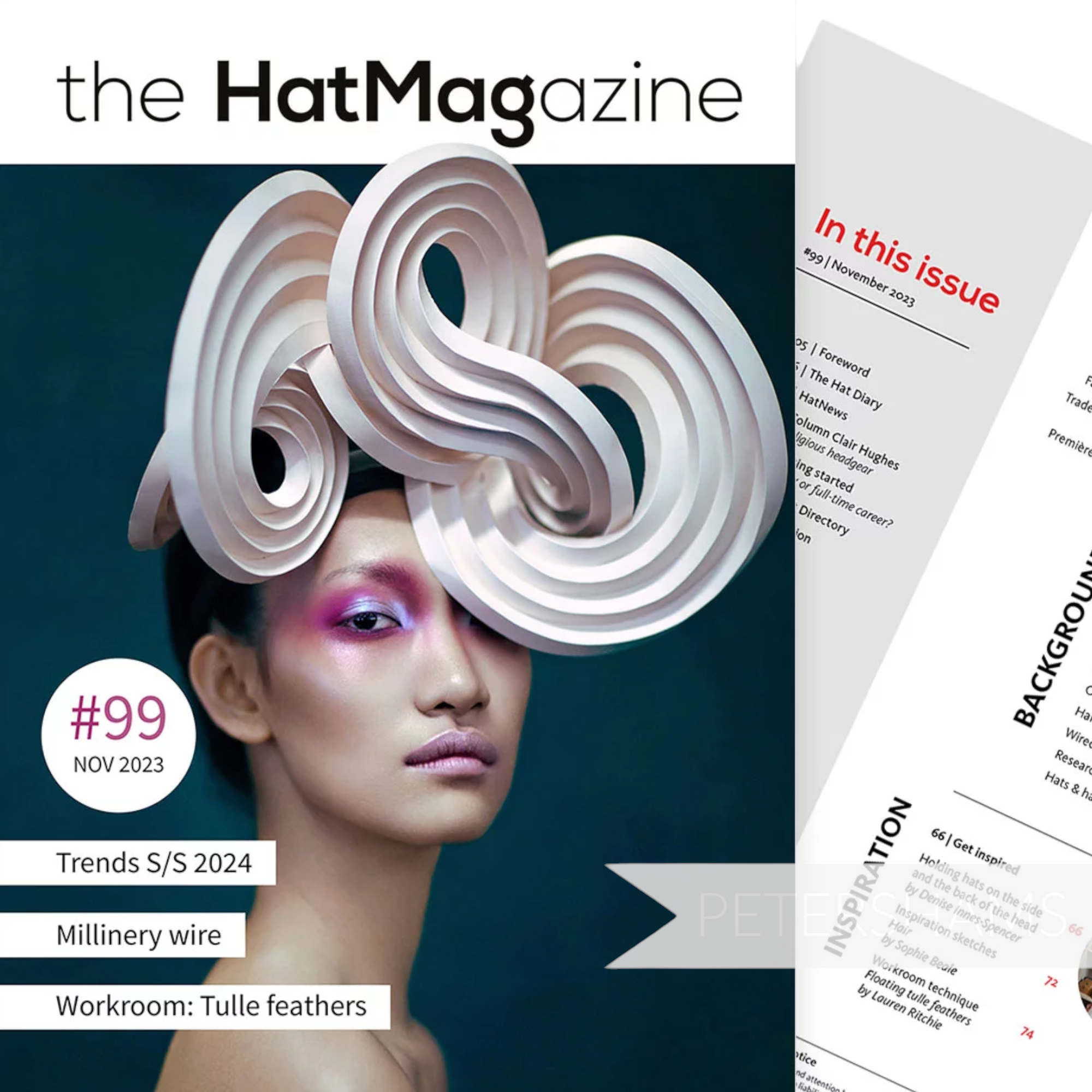 In this issue: Interview with Awon Golding, Trade shows & trends report S/S 2024, Goodwood Revival report, Hats & hair article, Some basics about millinery wire, Workroom technique 'Floating tulle feathers' by Lauren Ritchie, Wall/desk planner 2024 and more.
