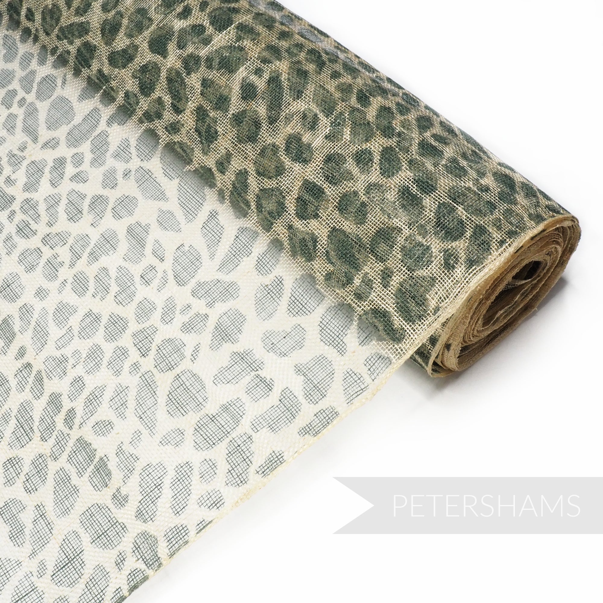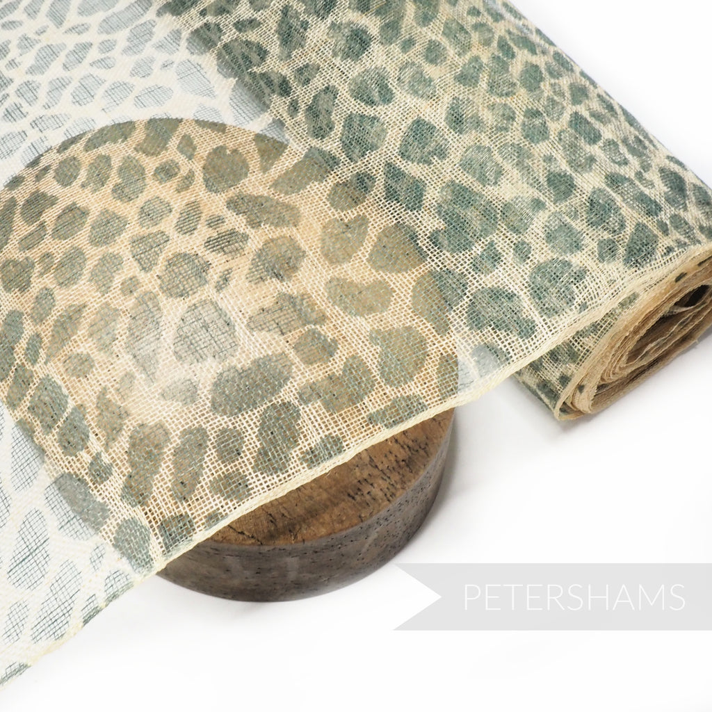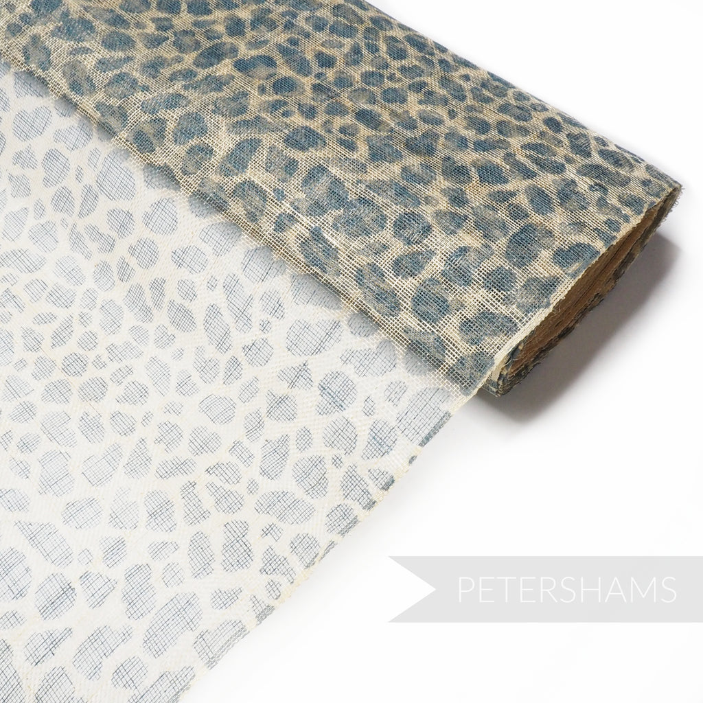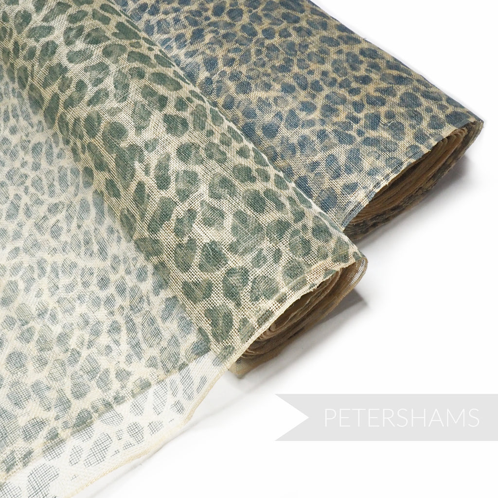 This high quality cheetah print sinamay fabric is stunning! Printed onto natural abaca, use it as a top layer to make it really pop.