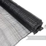 This shimmery sinamay millinery fabric is lush! Threaded with gold metallic lurex in a pinstripe design, it's ideal for hat making as it is lightweight and can be moulded onto hat blocks or styled freehand to make hat trims and fascinators. Fabric is lightly stiffened and is great for using as a top layer for hat making projects. Handwoven, this sinamay has a bit more sway and softness. Great for free-forming!