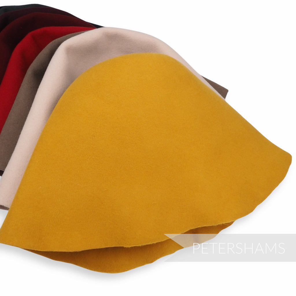 This wool felt cone hat body is made from 100% thick Australian wool and has been stiffened to help in the hat blocking process. Great for making fascinators and hats from scratch the traditional way.