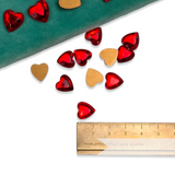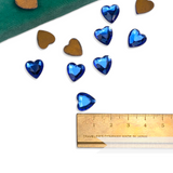 These are one of our favourites from our haul from a closed down jewellery manufacturer. Made from beautifully coloured glass, these heart-shape beauties date to around the 1980/90's and feature a finely cut raised dome with a foiled flat-back.