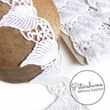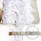 6cm Wide White Large Leaf Design Guipure Lace Trim - 1m