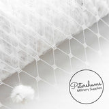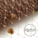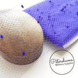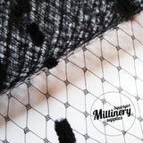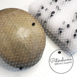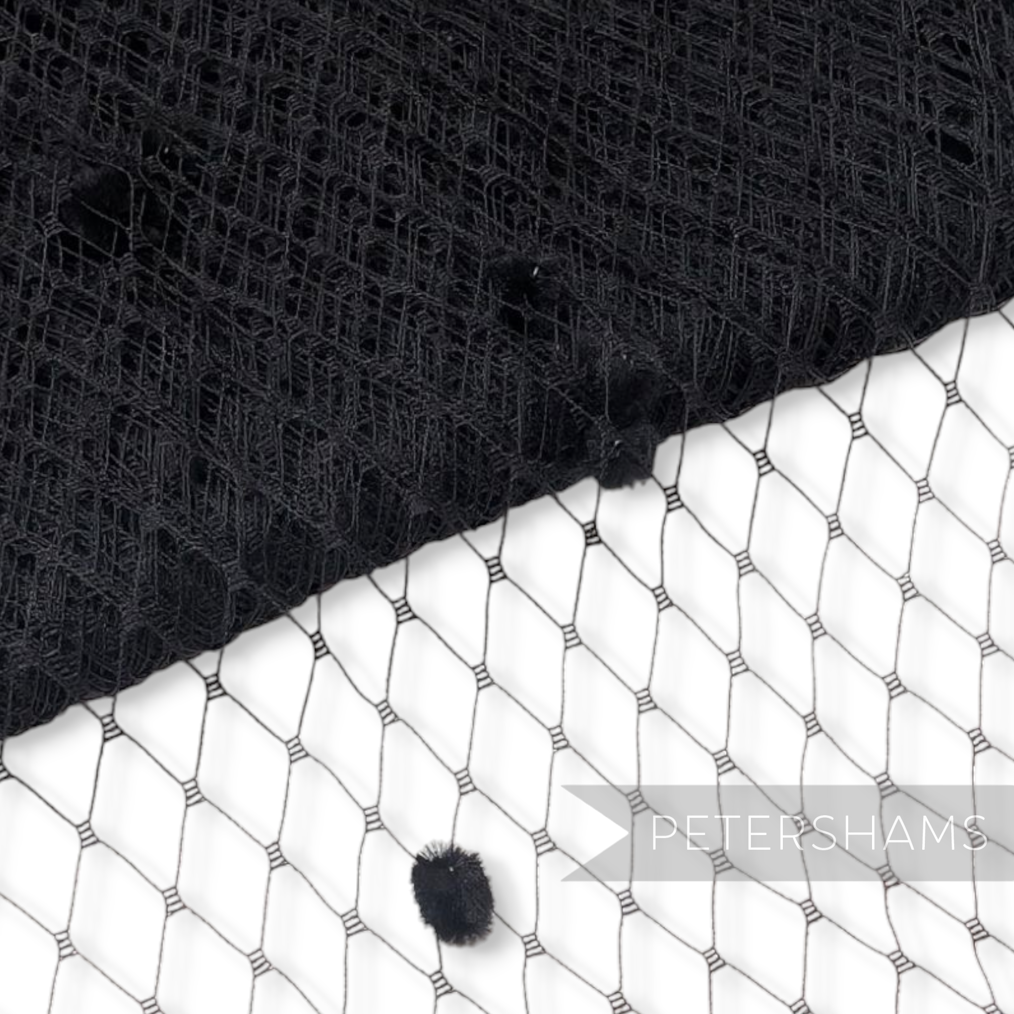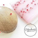 This fine veiling is a millinery favourite! Sometimes referred to as Russian veiling or French net, it is simply perfect for making blusher wedding veils as well as trimming hats and fascinators. This variety has chenille dots spotted throughout.