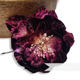 Vintage AND velvet?! Oh we do spoil you! Meet 'Alice', a velvet hat mount dating to the 1980's/90's, composed of carefully cut petals and some dainty little stamens. Try popping one on our velvet headbands for a simple yet elegant look!