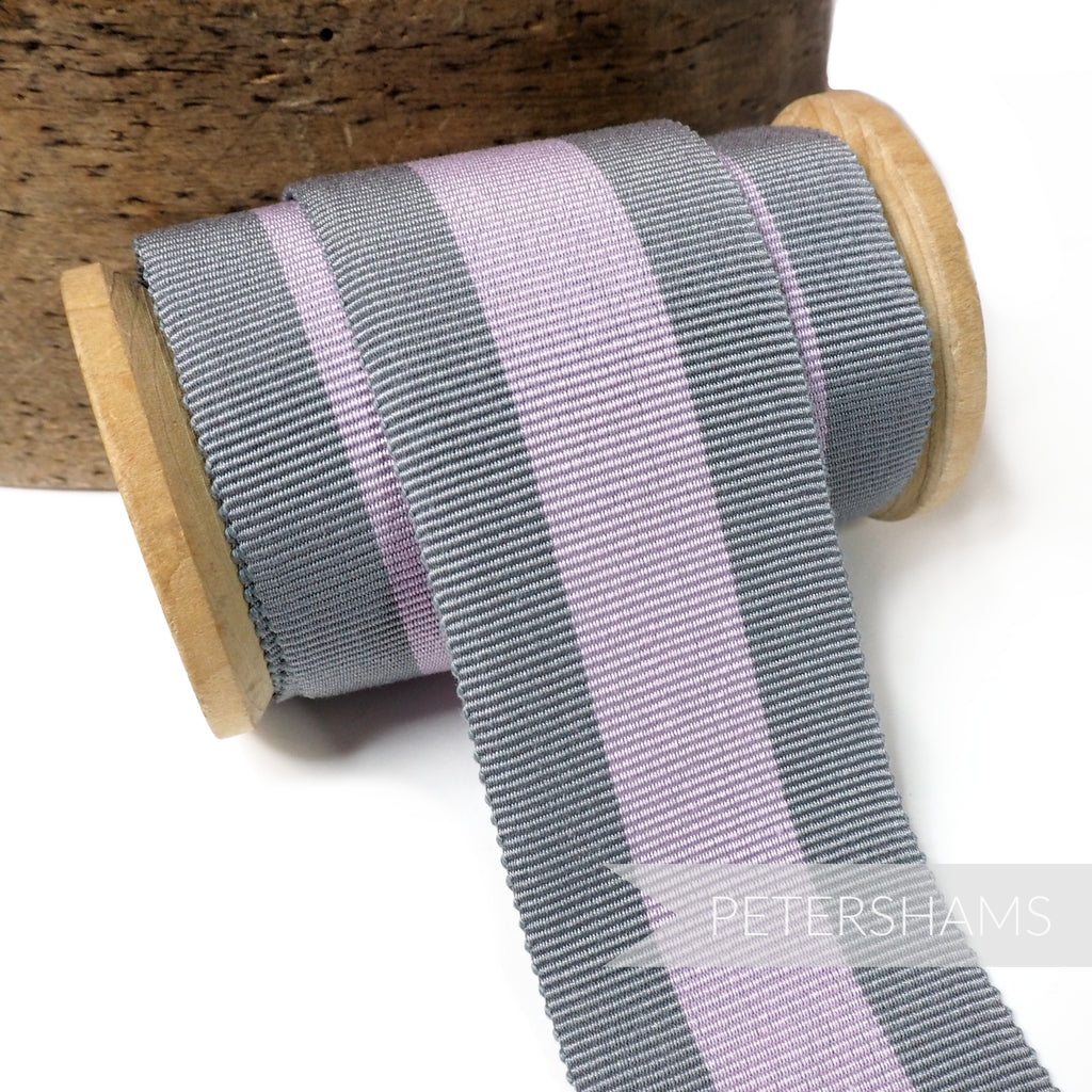 This striped petersham ribbon is an absolute classic! In both traditional and modern colourways, this ribbon works wonderfully for creating French cockades and trimming hat crowns.