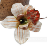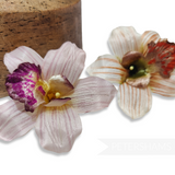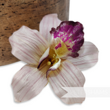 This incredibly made orchid flower really is a case of they-don't-make-it-like-they-used-to! Crafted from wired hand painted silk petals, it features a velvet inner petal that has been dyed h the best gradient and stencilled painted detail. If you are looking for a gorgeous orchid then 'Della' is your gal!
