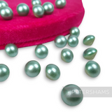 Dating to the late 1930's-40s and made in the Czech republic, these vintage buttons are made of pearly coated glass and have the most fabulous weight to them. They are shaped like perfect little globe balls have a small indent at the bottom sides in which you can sew through for attaching to your project.