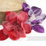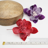Vintage AND velvet?! Oh we do spoil you! Meet 'Heidi', a vintage velvet hat mount dating to the 1990's, composed of carefully cut organza and velvet petals, veined leaves and a big bundle of matt finish stamens. Try popping one on our velvet headbands for a simple yet elegant look!