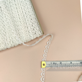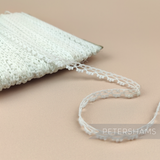 Synthetic in material, this trim has the teeniest tiniest off-white fuzzy pom poms scalloped along it's length.