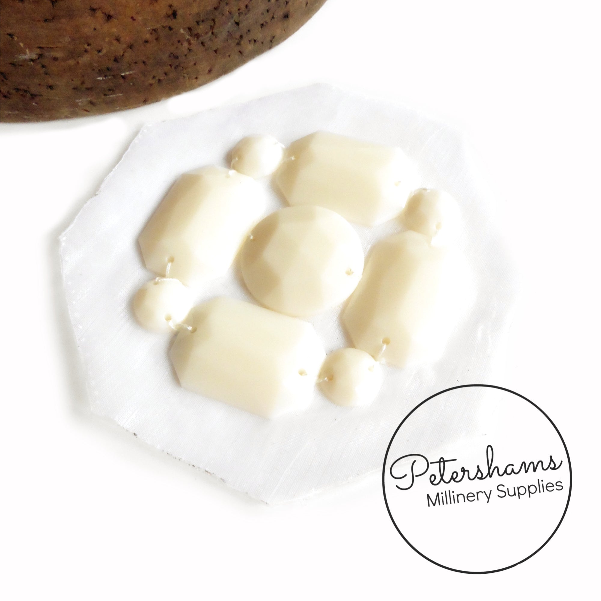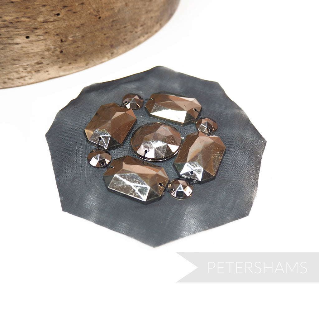 This gemstone motif is simply perfect for the bride who wants something a bit more graphic. Featuring large acrylic gemstones arranged in a circular layout it has a sheer organza backing which you can trim away or fold under to secure to your project.