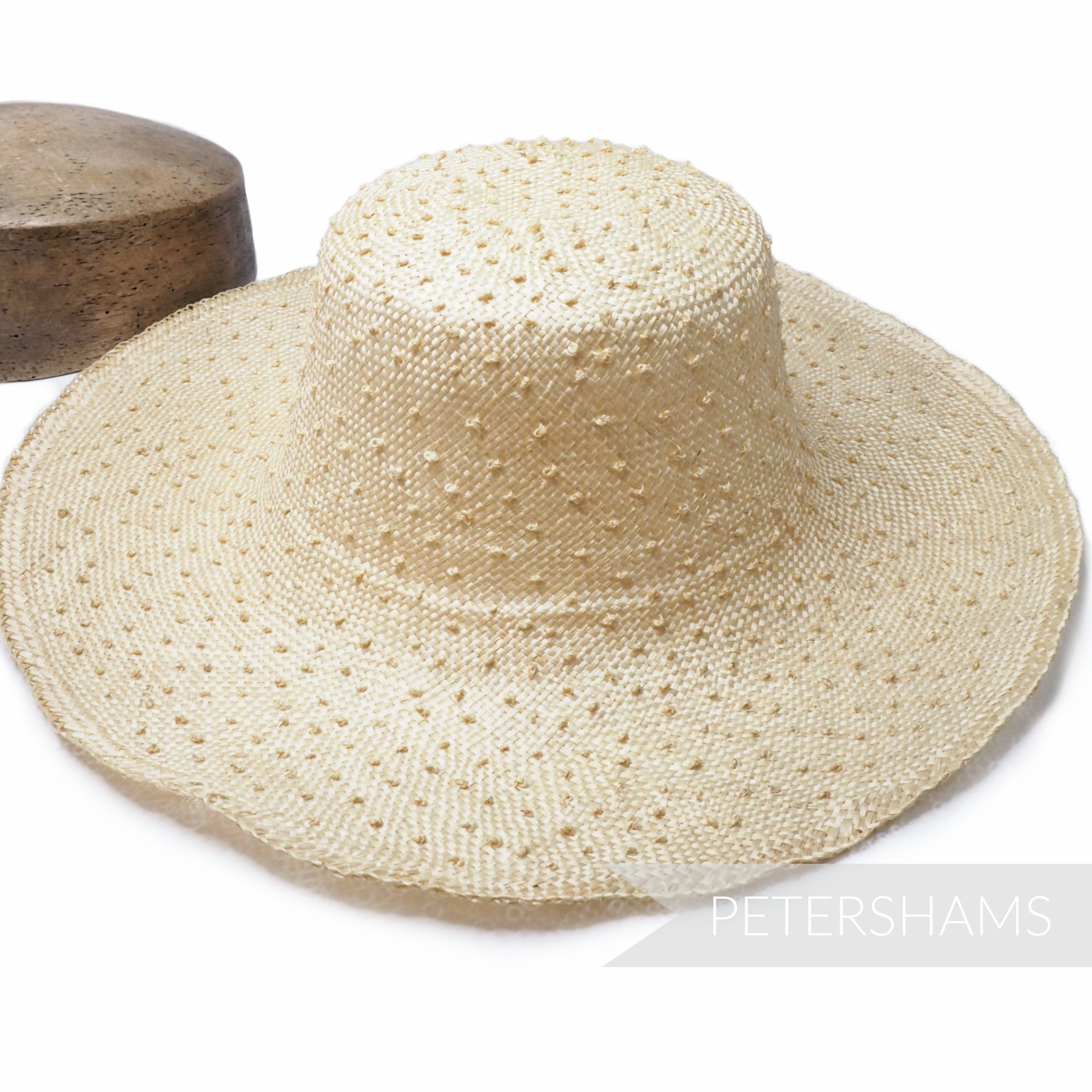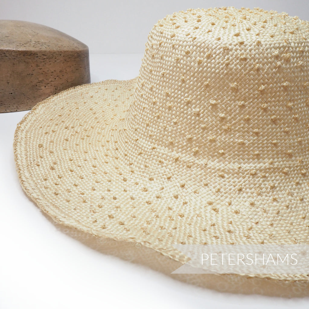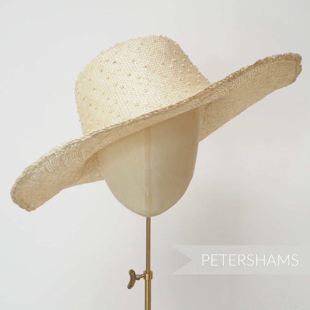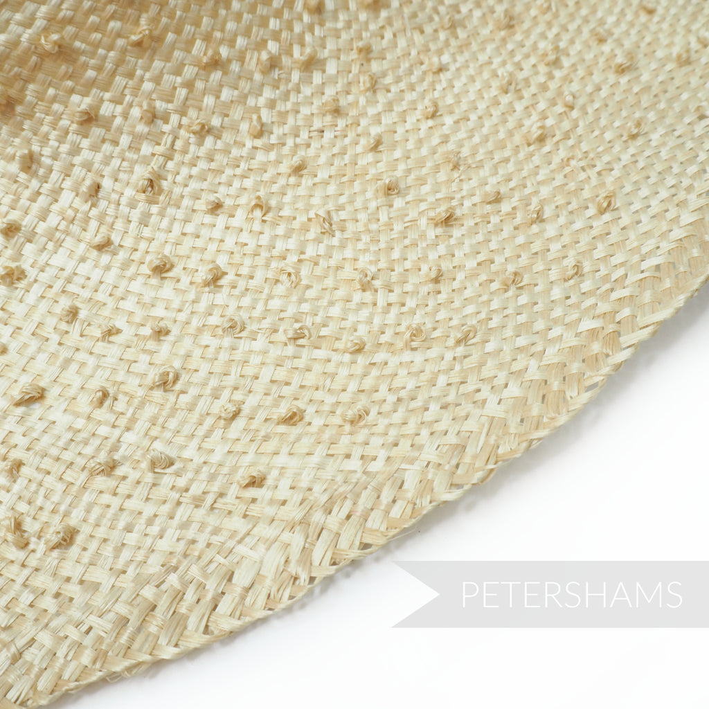 This deluxe capeline is made from super fine natural undyed ramie straw and has knotted stitch detail throughout. A real rarity, it looks amazing when blocked out with supreme texture and interest.