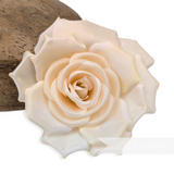Asymmetric in shape, our 'Mandy' flower has a stunning shape, very unusual and perfectly formed. Each petal has been individually shaped and has a central stem attached at the back. You may find some of the petals are a little yellowed on the edges, but is quite subtle. Please see images.