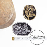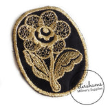 Embroidered with metallic threads, this motif has a lightweight black cotton background. Available in your choice of silver or gold.