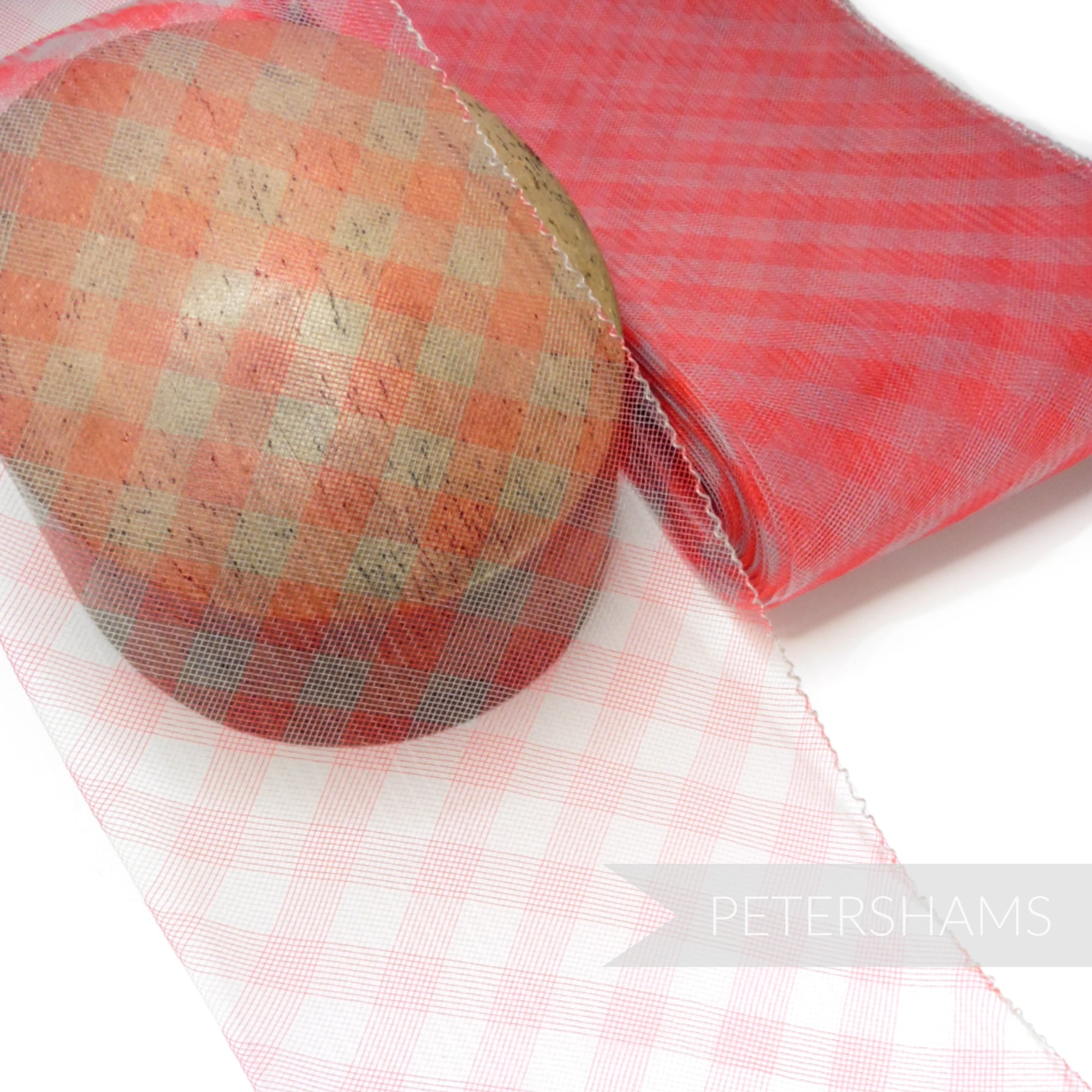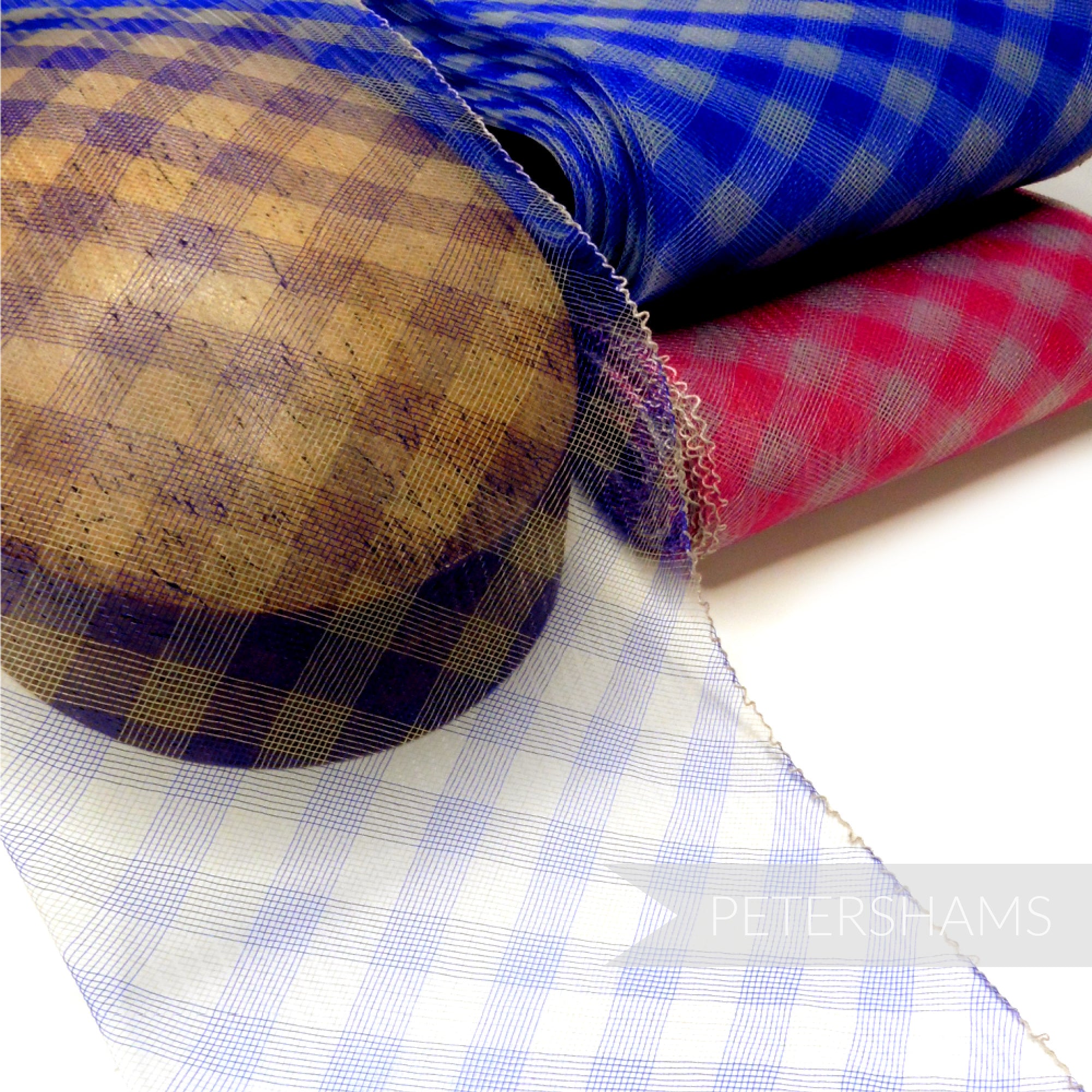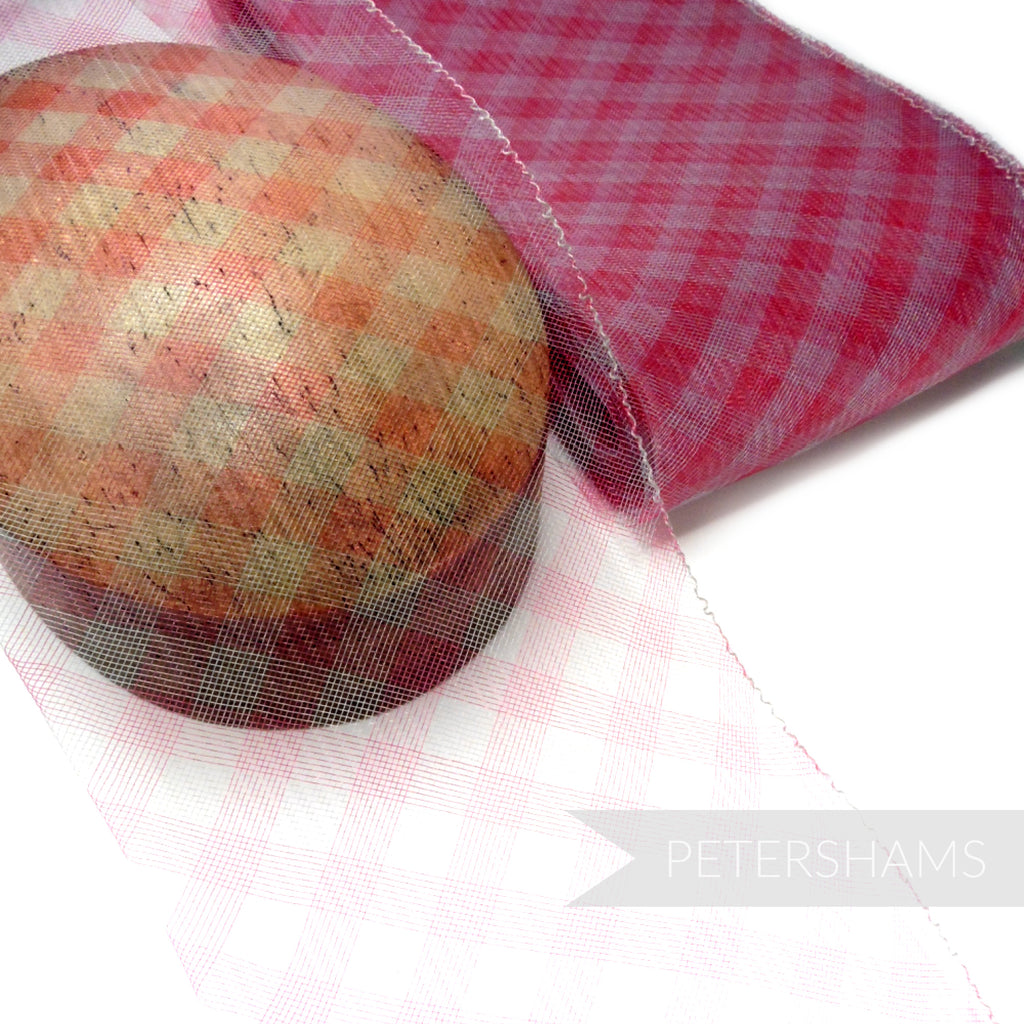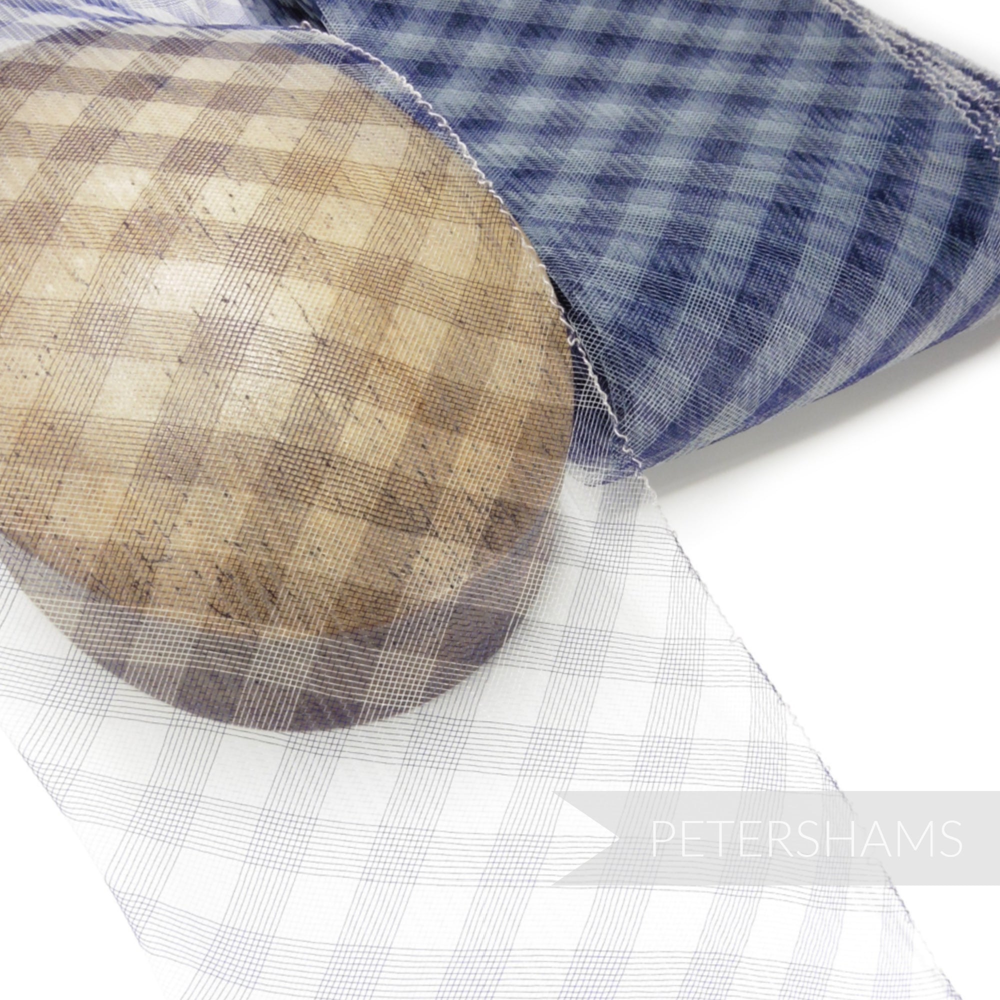 This petite checker pattern crin is woven onto pale grey crinoline with a contrasting colour to make for a subtle, elegant design. Swirl up to make a fabulous fascinator or try folding it in half to edge a brim!