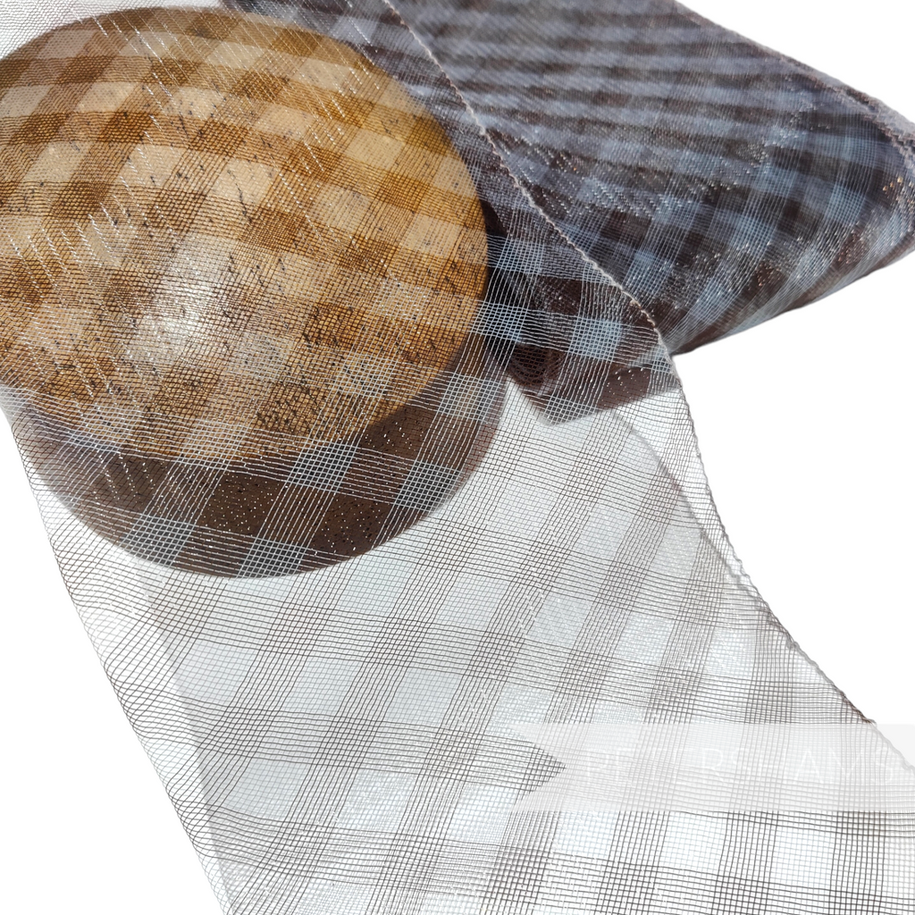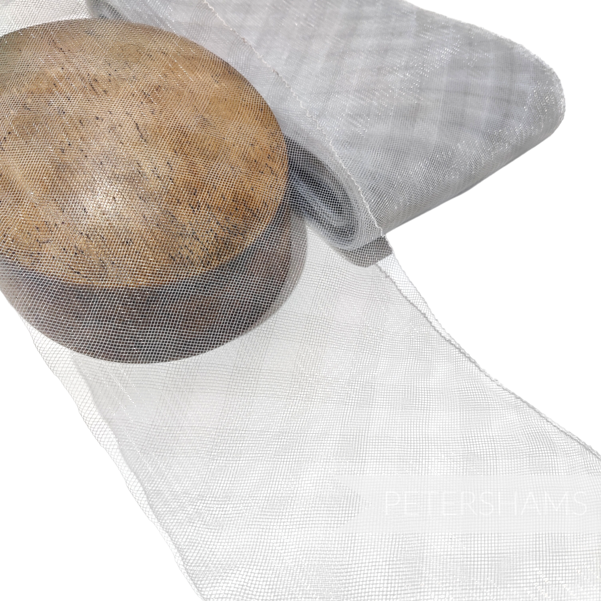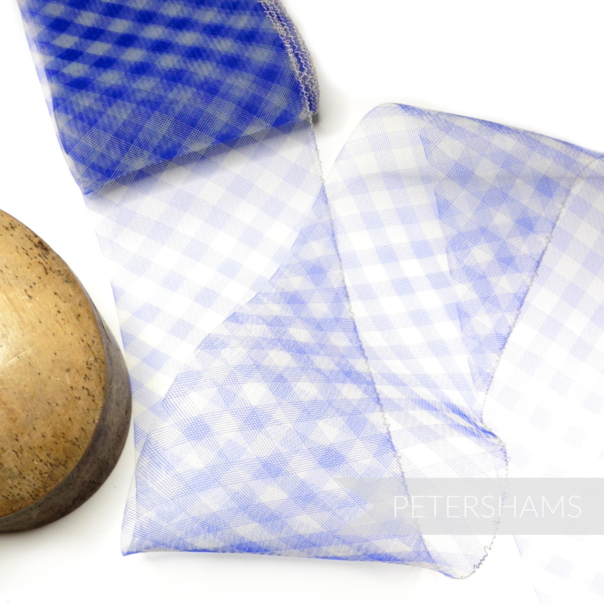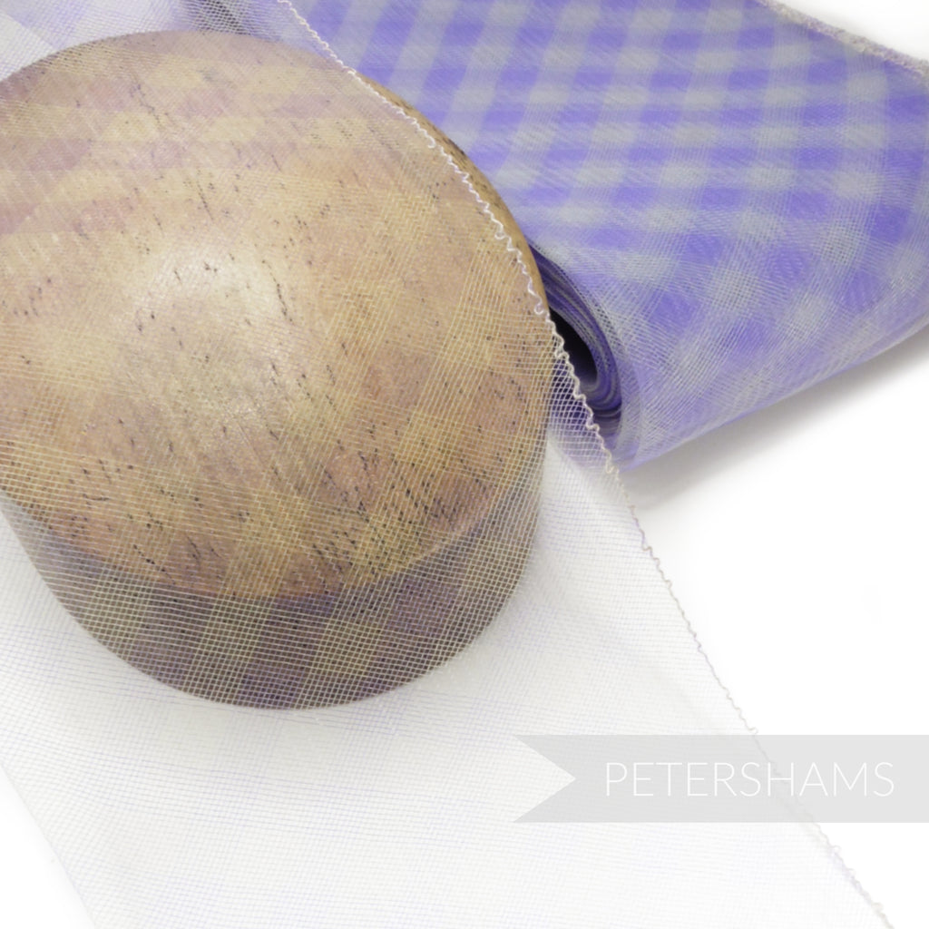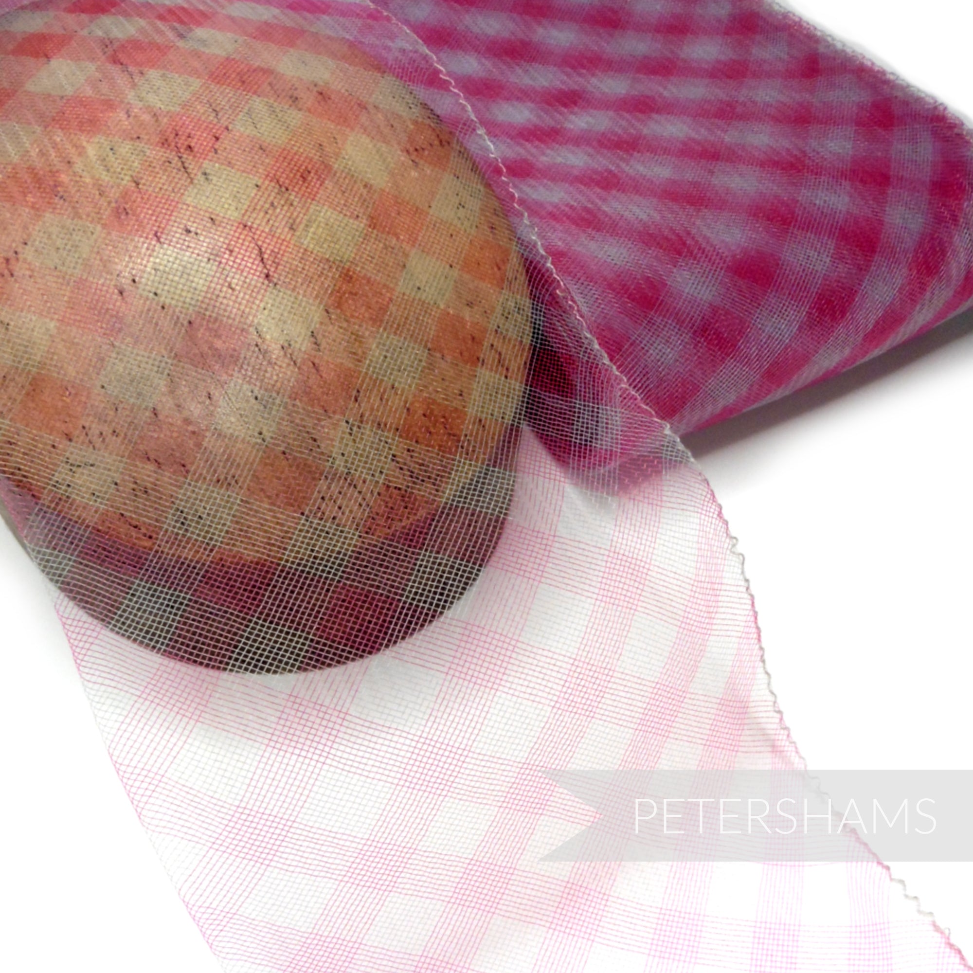This petite checker pattern crin is woven onto pale grey crinoline with a contrasting colour to make for a subtle, elegant design. Swirl up to make a fabulous fascinator or try folding it in half to edge a brim!