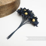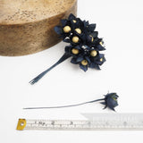 These petite flowers were made in the 1950's from crisply cut lightweight cotton (or possibly silk) with a rounded fuzzy-effect center stamen.