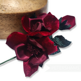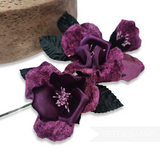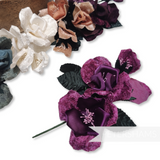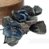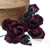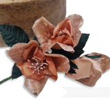 This satin and velvet flower is definitely amongst the lushest we have got! Made from top quality satin layered with plush velvet petals, each one has been expertly pressed and shaped. It also have five wired leaves at the back. This one is not to be missed!