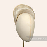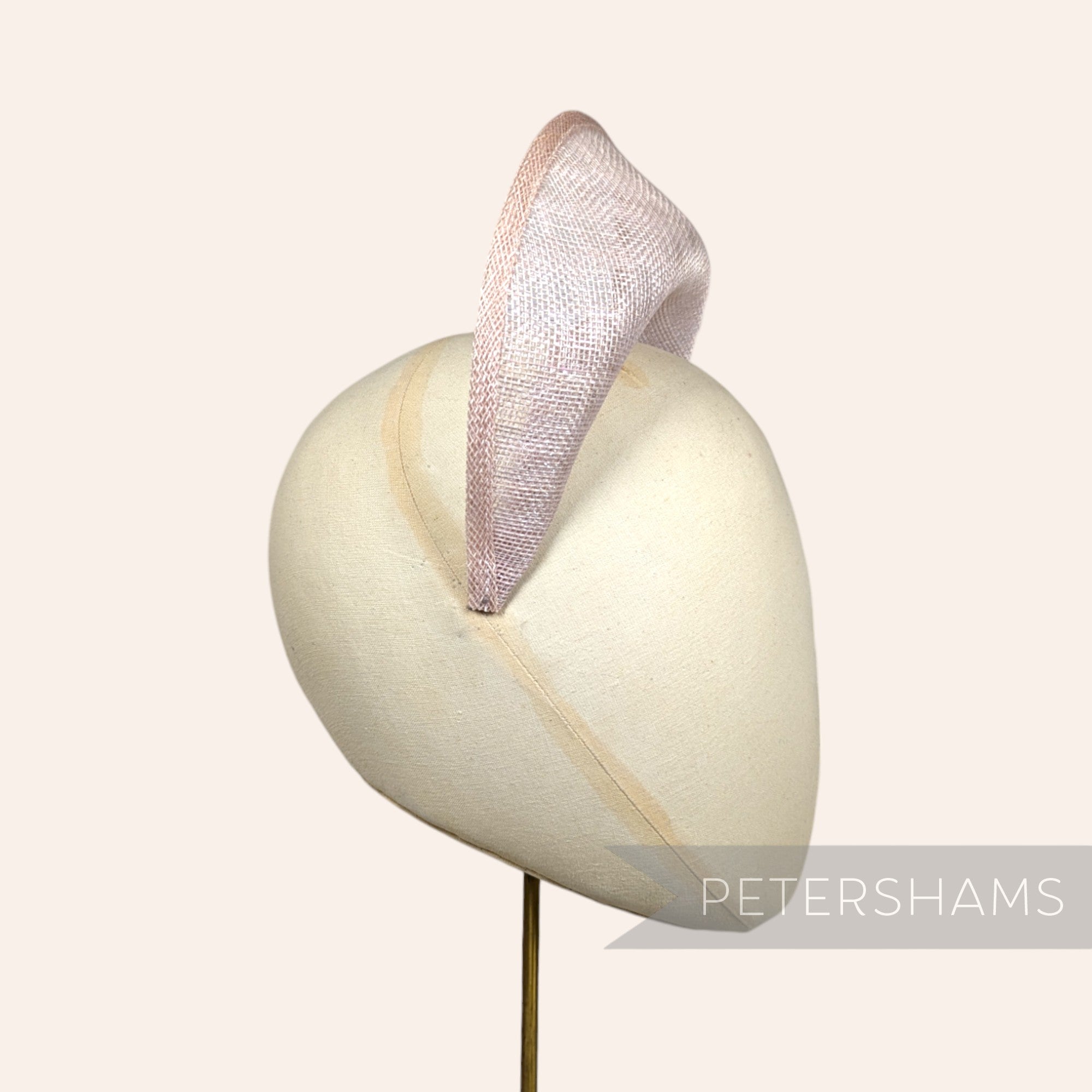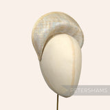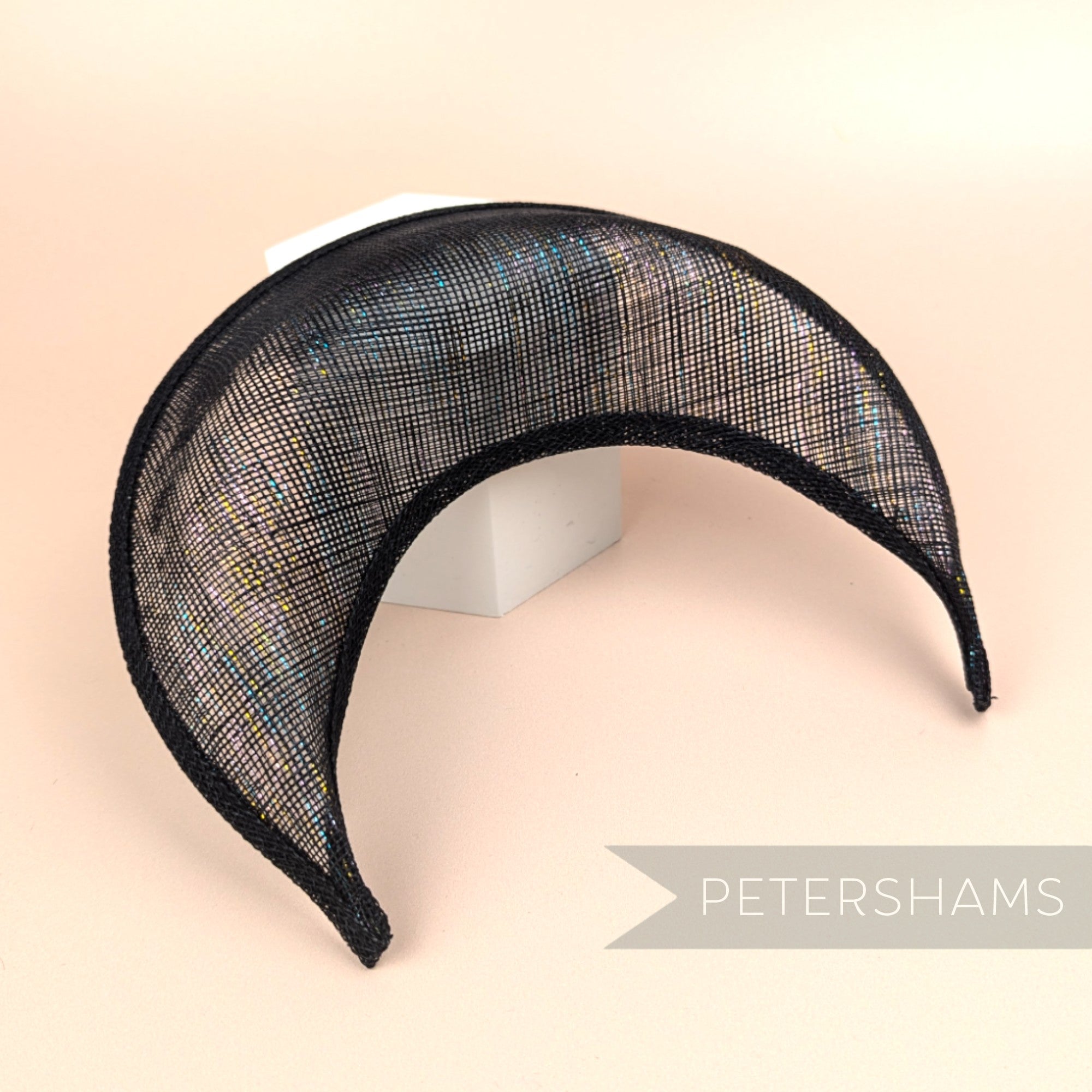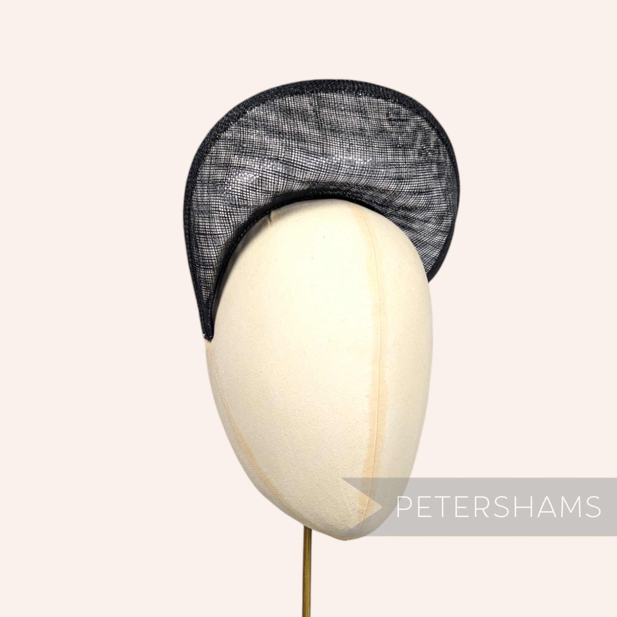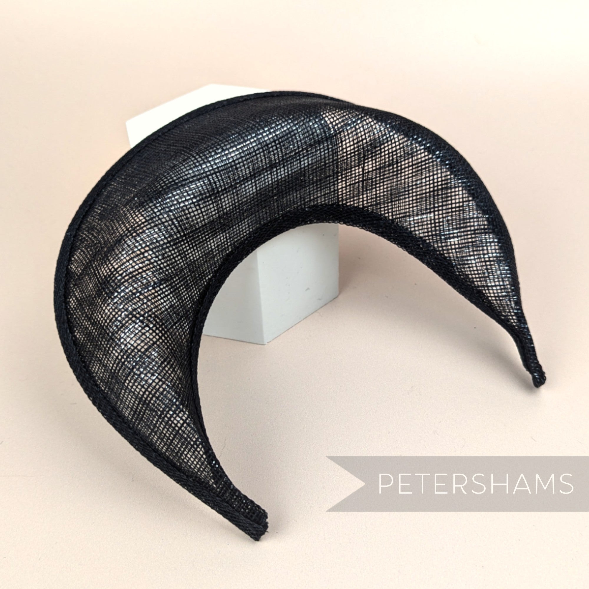 Made from a double layer of high-quality stiffened sinamay, with the underneath layer being made of metallic lurex sinamay for a subtle finish. Ideal if you're wanting a toned down version of our metallic lurex halo crowns. This shape has a domed front with a hollow underside, sinamay bias finished edges and tapered ends that sit nicely at the side of the head.