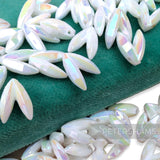 These incredible beads have a very unique shape, depicting a chevron shape. They have one hole through the top of the bead. Far superior when compared with some modern day equivalent and their unique shape and colouring is perfect for headpieces, costuming and jewellery.