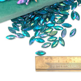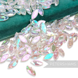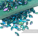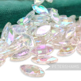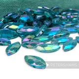 These incredible faceted flat-backed beads have a marquise shape and have two sew-holes running through the centre. Far superior when compared with some modern day equivalent. Their unique shape and colouring is perfect for headpieces.